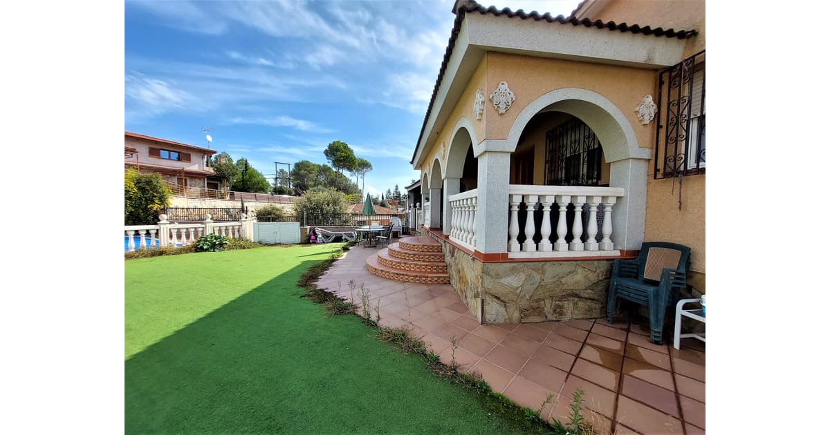 Xalet construït sobre un solar de 766 m², disposa d'un porxo ensostrat i pavimentat, zona de barbacoa per a gaudir de menjars familiars .