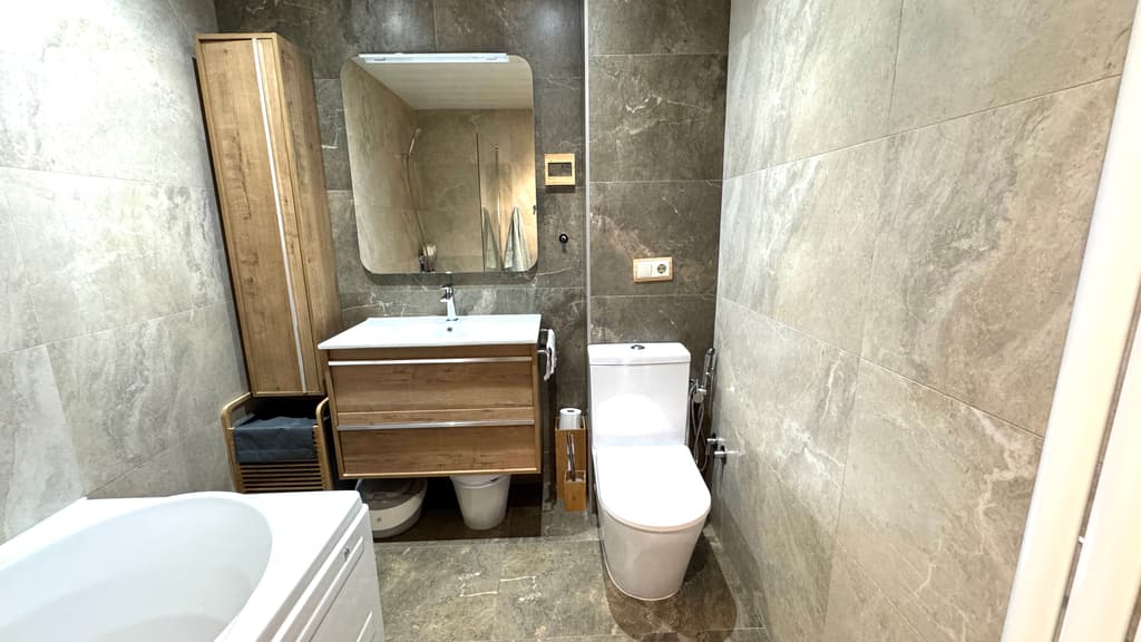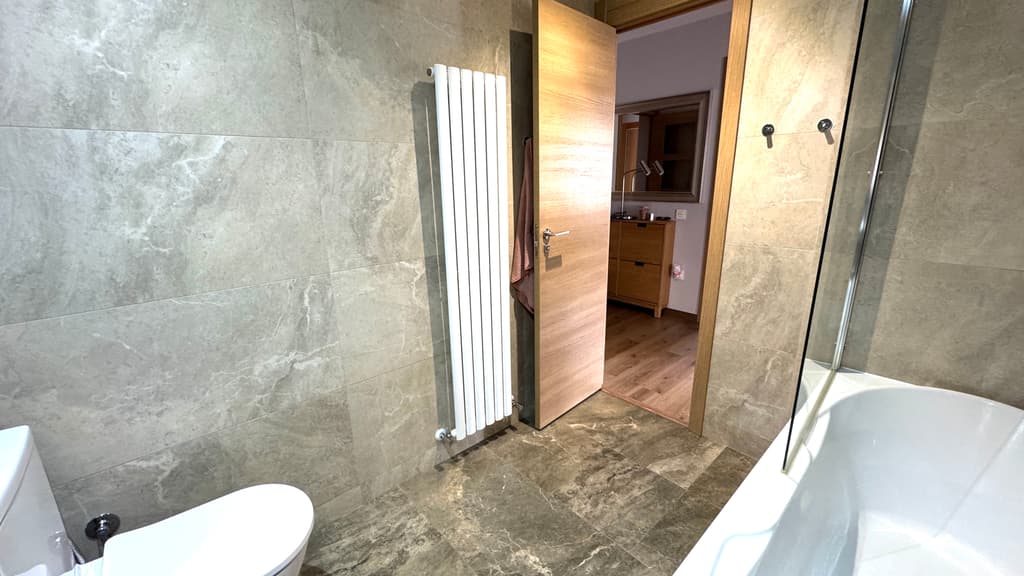 També disposa d'un bany , totalment reformat, amb estil molt actual i amb banyera i mampara de vidre.