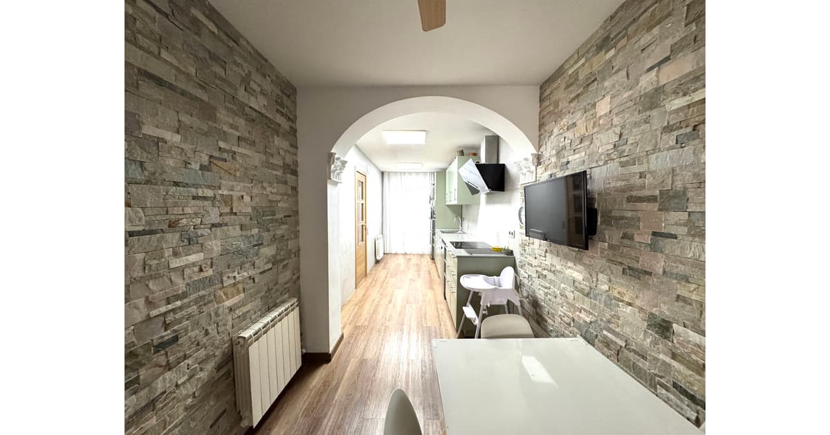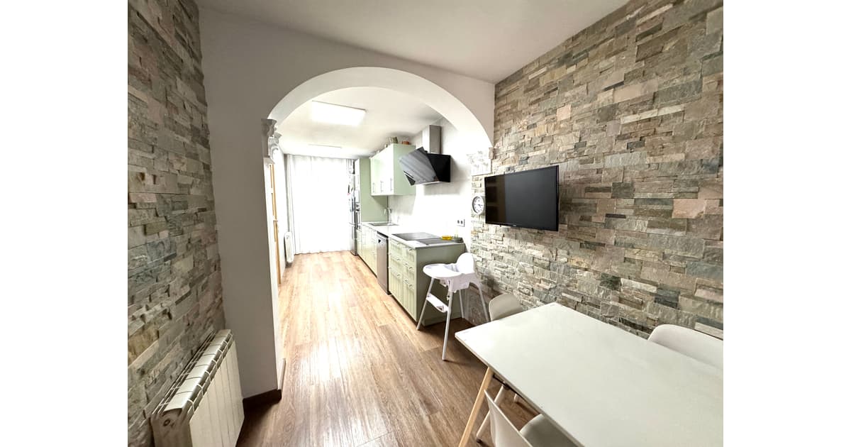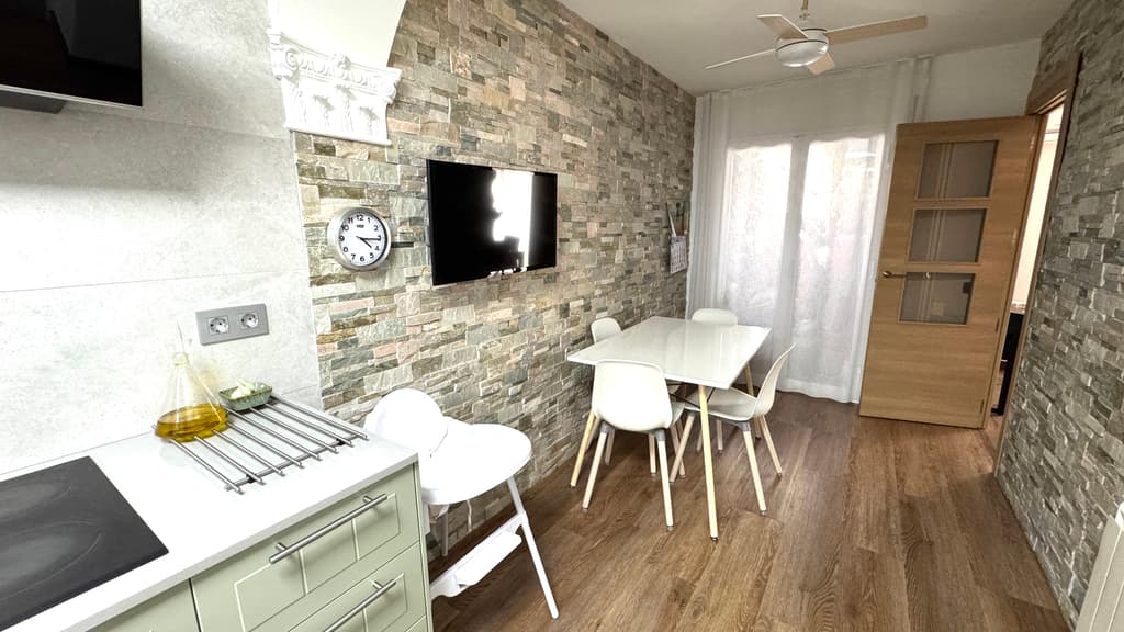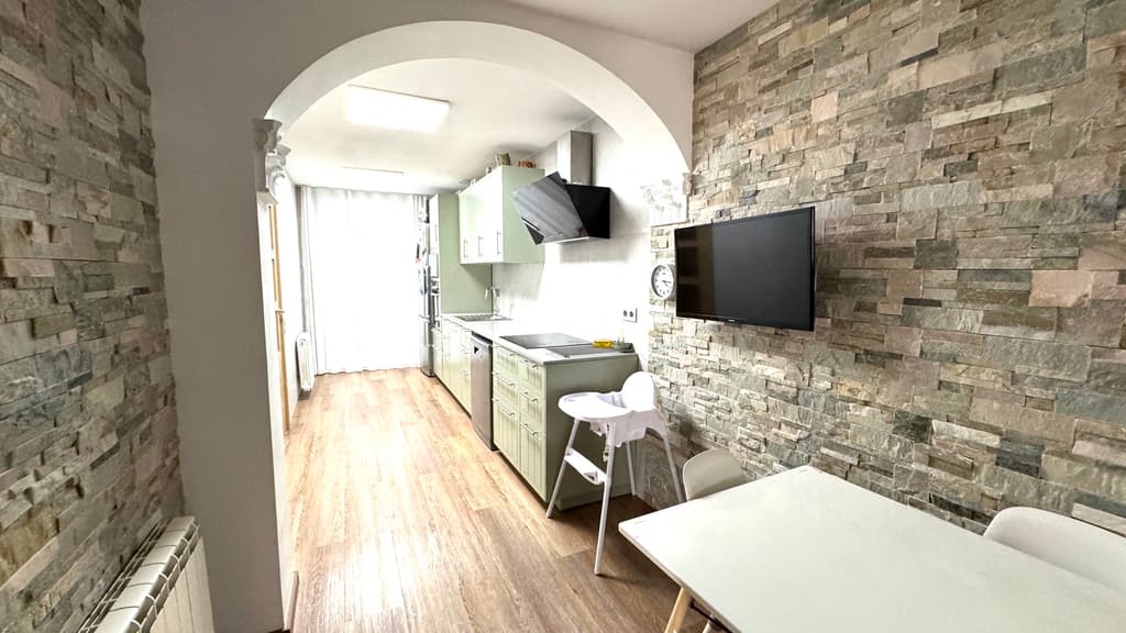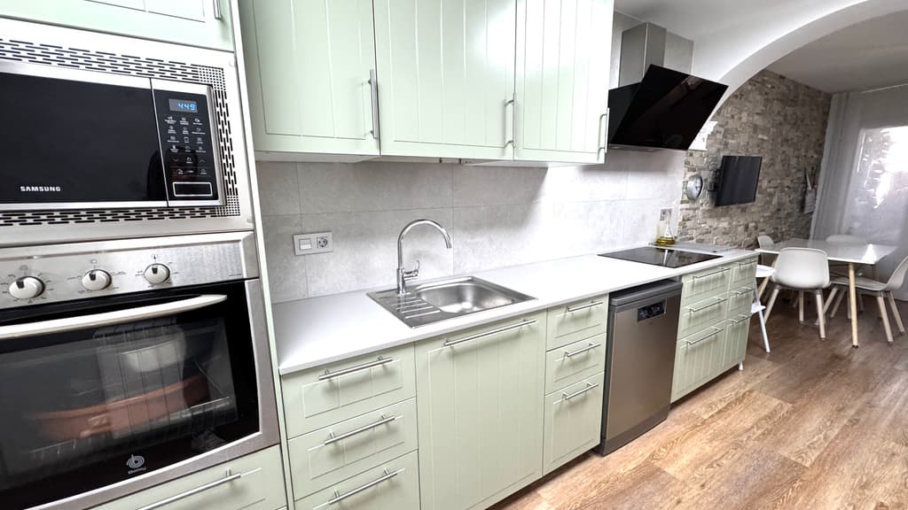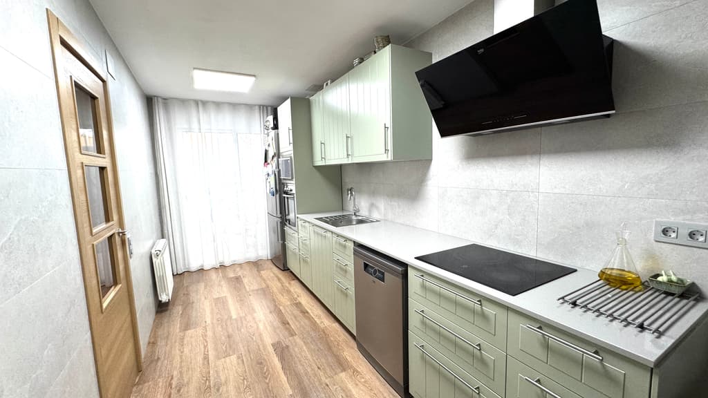 Cuina totalment reformada i amb espai per a taula i cadires.