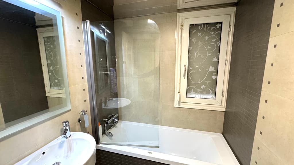 Els banys estan dissenyats amb un estil modern: un d'ells amb banyera i l'altre amb plat de dutxa a peu de sòl, amb sistema d'hidromassatge.