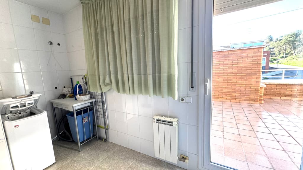 Segona Planta: Accedim per una escala àmplia i ens rep una gran sala , d'ús polivalent, amb orientació sud i sol tot el dia i amb sortida a una terrassa solàrium , que ens ofereix molta intimitat. Just al costat , trobem una sala adaptada a zona de lavanderia i amb sortida a la mateixa terrassa. La zona de nit es distribueix en 2 dormitoris , els 2 dobles , totalment exteriors , amb armaris de paret i amb sortida a balcó i amb molta lluminositat. En el distribuïdor trobem un bany complet amb banyera. En aquesta planta, tenim xemeneia per a poder instal·lar foc a terra.