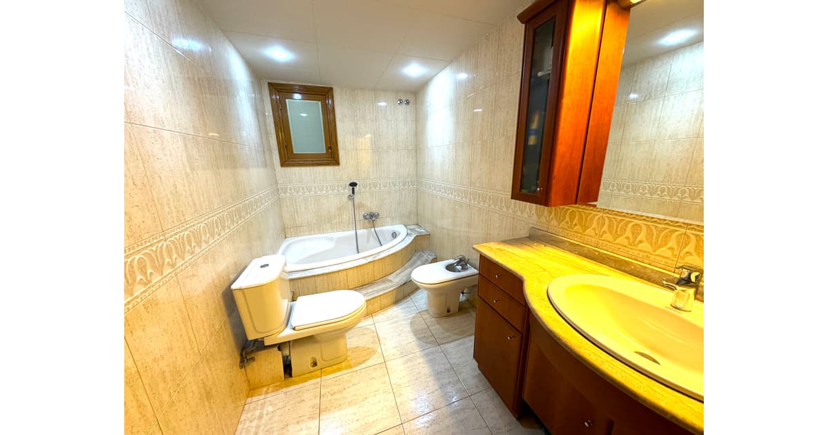 El bany, és ampli i disposa de 4 peces , una generosa banyera raconera i revestit de gres.