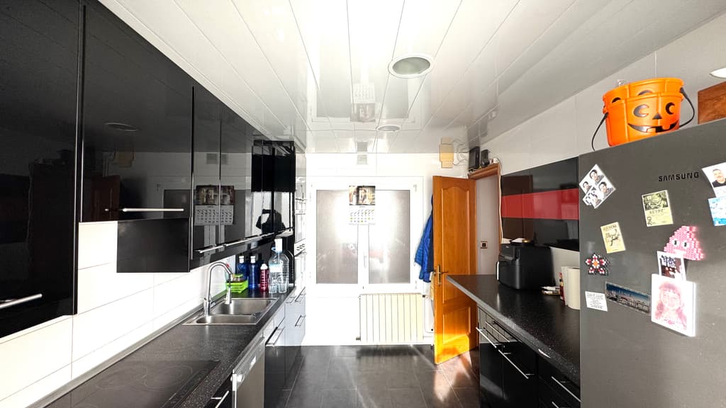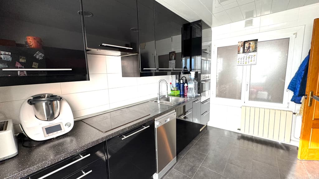 Just al costat, ens trobem una cuina office, reformada, amb estil modern i actual i amb unes dimensions generoses, molt bona zona de treball , amb espai habilitat per a bugaderia i amb sortida al balcó , amb zona d'estenedor.