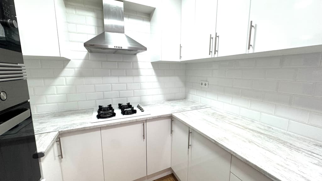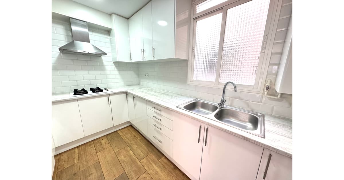 Cuina independent reformada, d'estil modern i actual , equipada i amb gran capacitat de magatzematge.