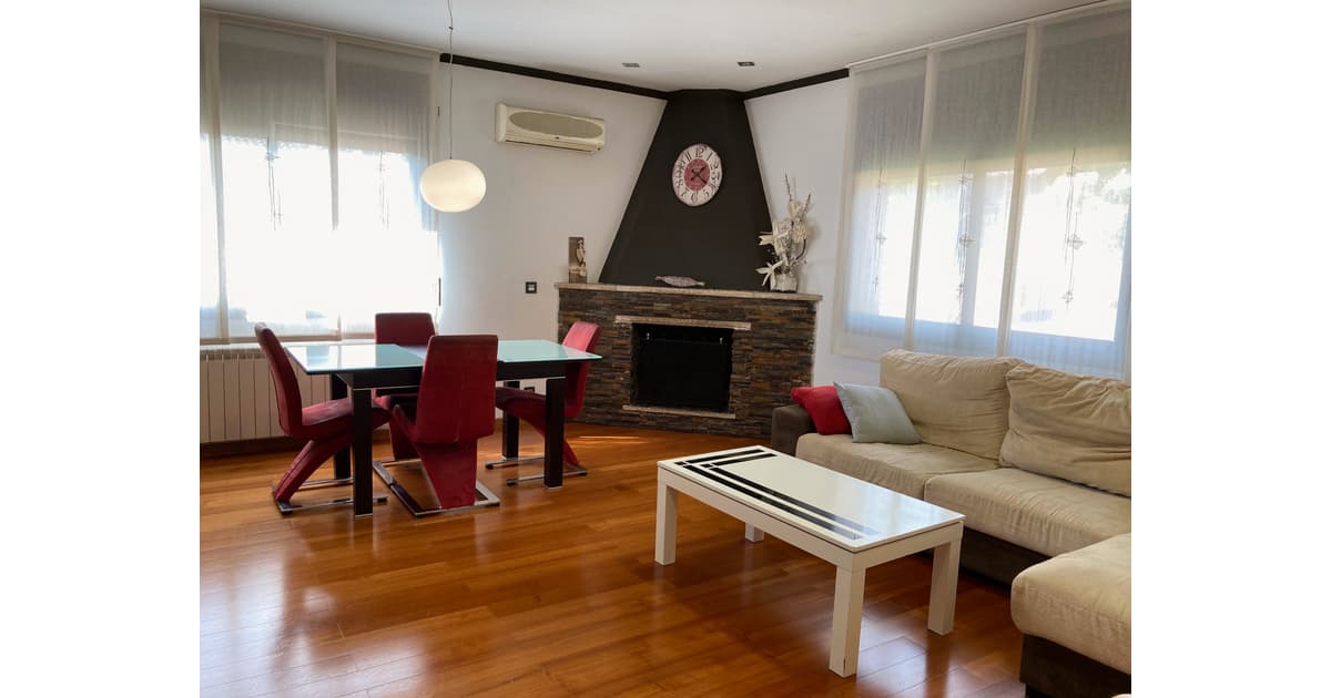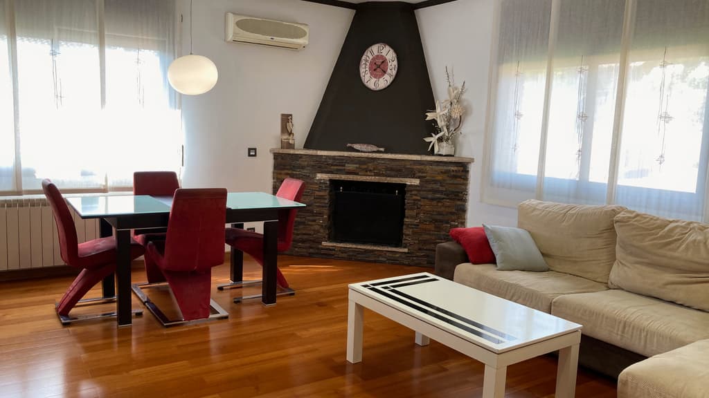 I un ampli menjador, amb xemeneia, finestrals i una estada ideal per a compartir amb la família.