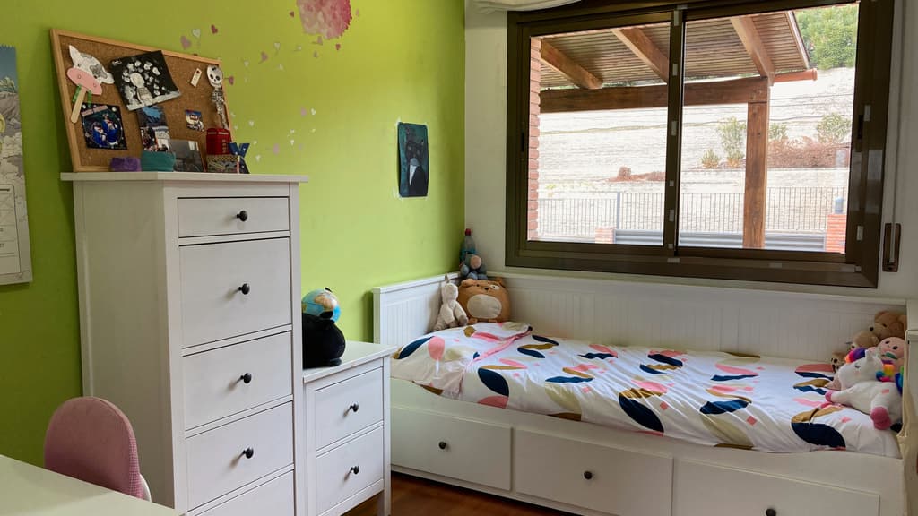 La casa es divideix en dues plantes. Accedim a la casa per un bonic porxo on podem menjar i fer barbacoes amb amics i ens condueix al gran rebedor de la casa. Allí ens distribueix a les 4 habitacions àmplies, totes elles amb armaris de paret i una amb suite.