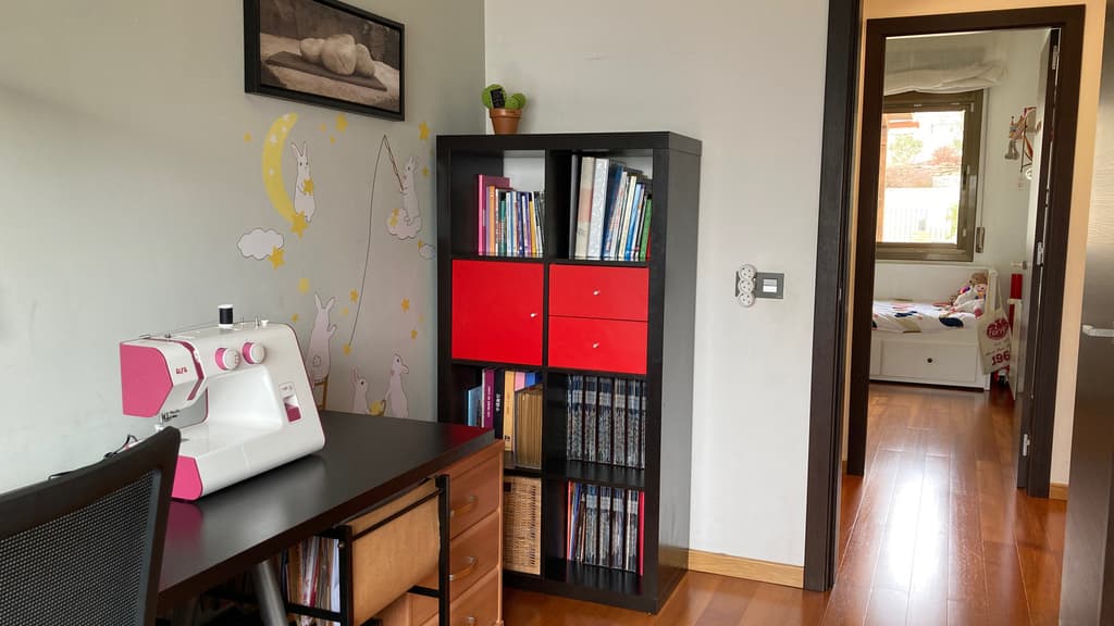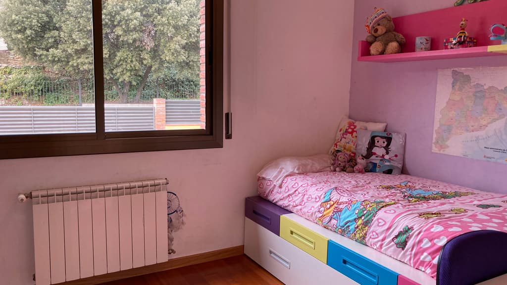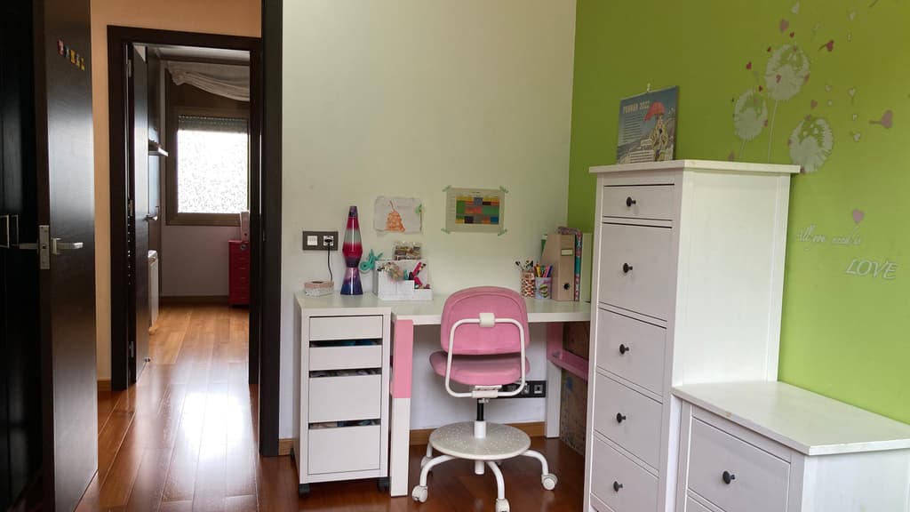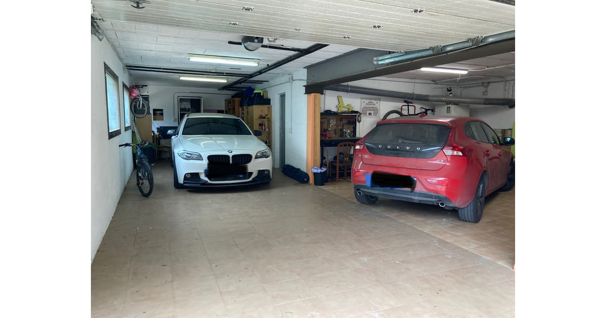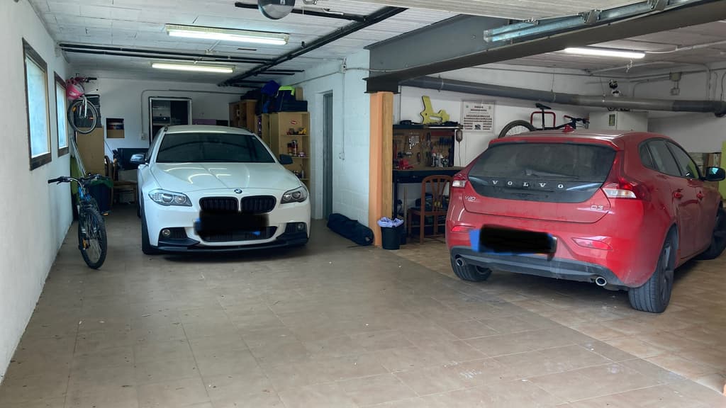 Sortim de la casa, i en la planta inferior trobem un gran garatge per a 3 cotxes i zones de magatzematge i una gran habitació de 35 m², actualment, sala de ioga, on podeu treure moltes possibilitats.