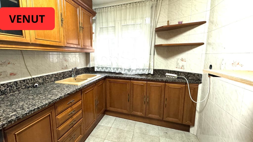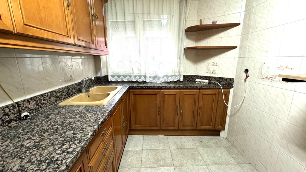 En la primera planta, trobem una cuina, amb bona zona de treball, espaiosa i amb molta claredat. Just al costat, tenim una sala d'estar, en fins i tot podria ampliar cuina i tenir zona per a menjar.