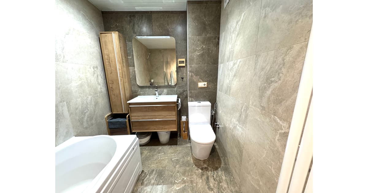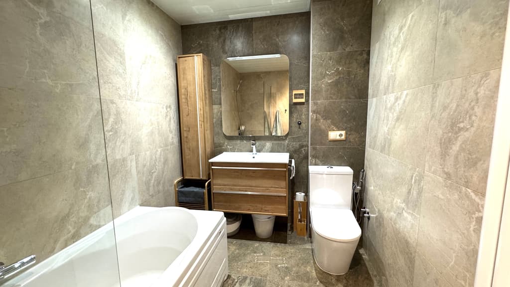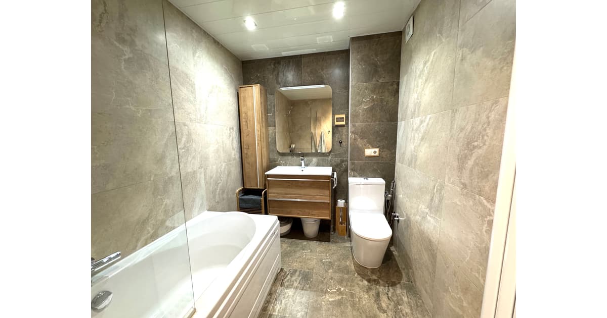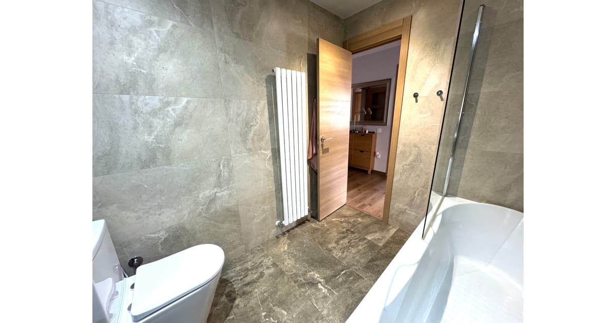 També disposa d'un bany , totalment reformat, amb estil molt actual i amb banyera i mampara de vidre.