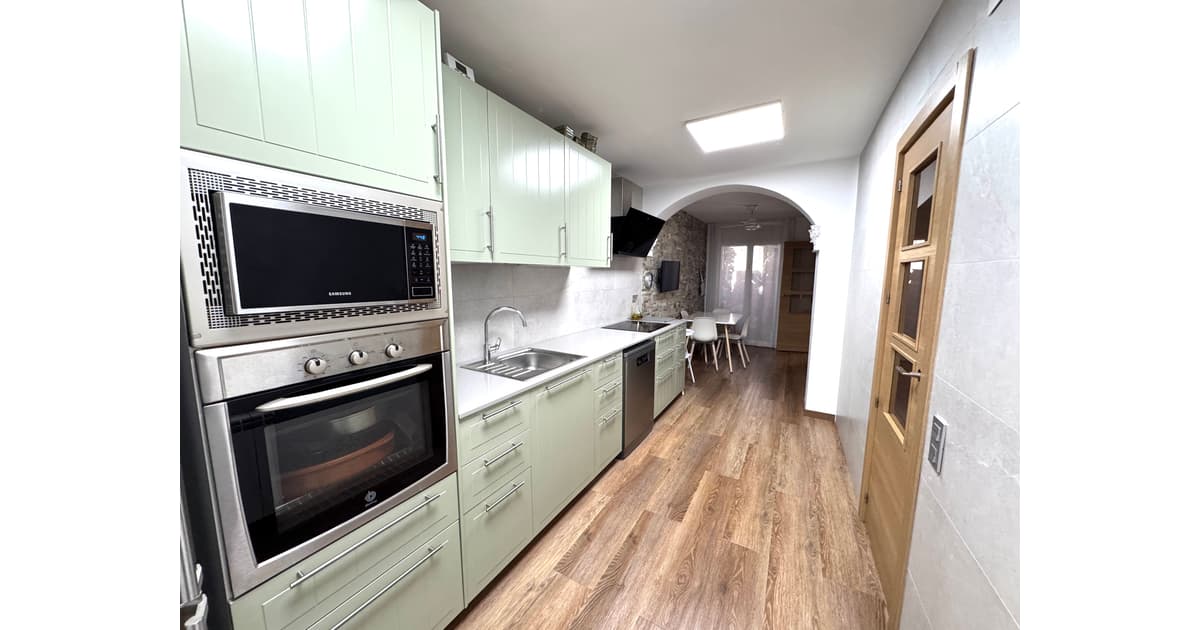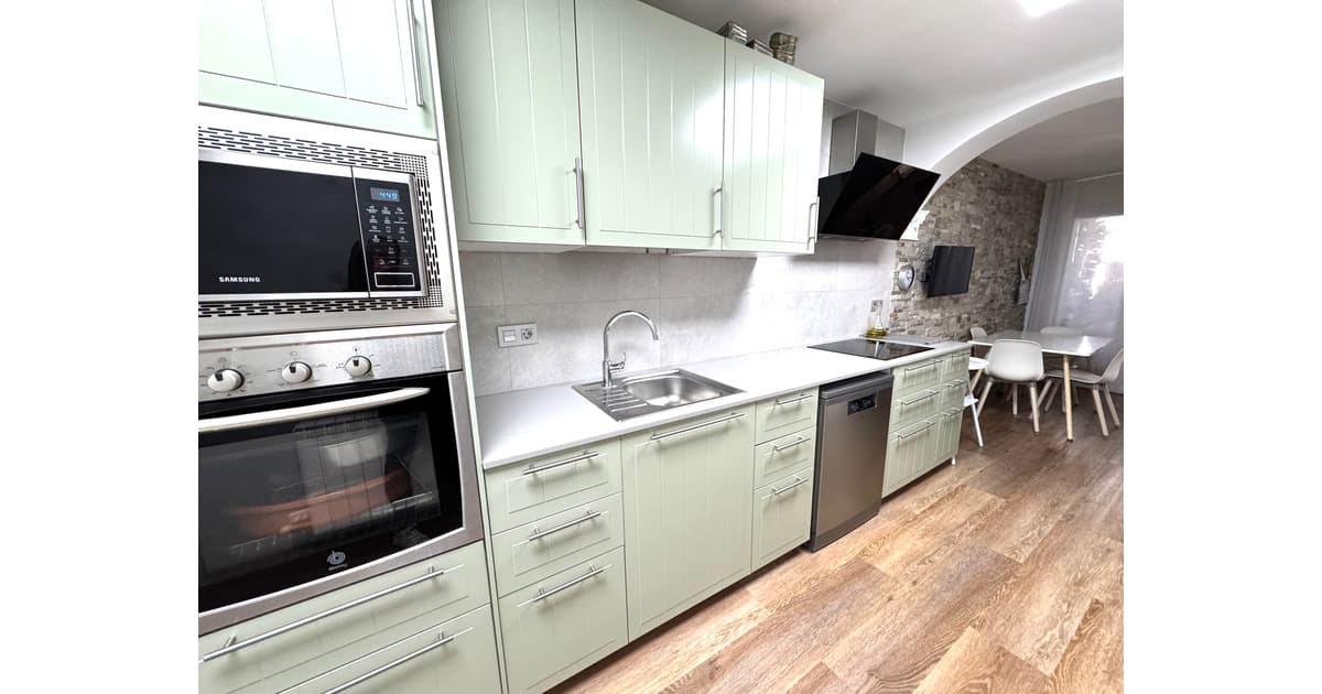 Cuina totalment reformada i amb espai per a taula i cadires.