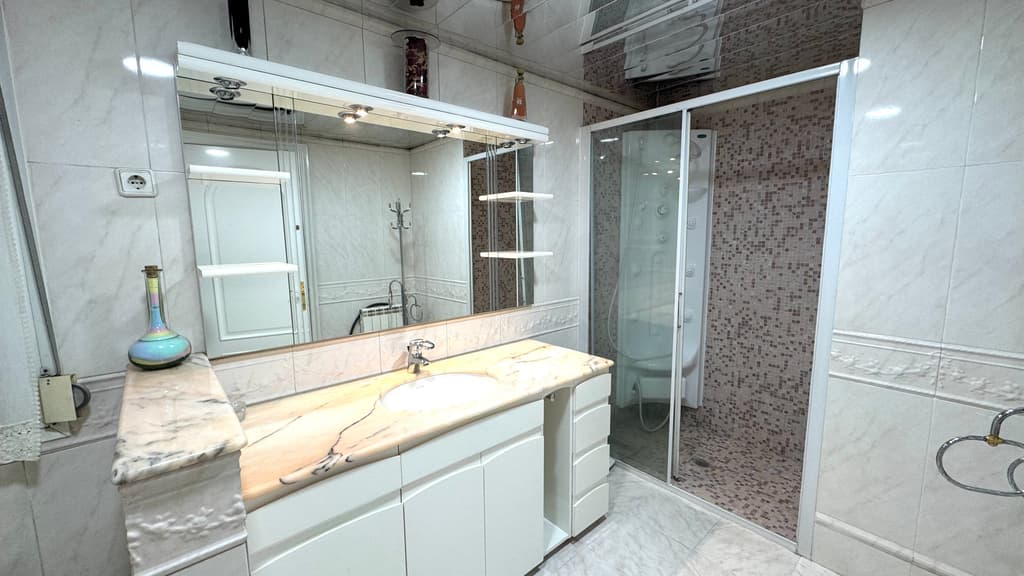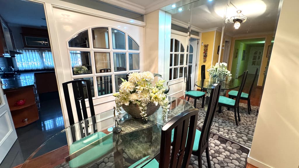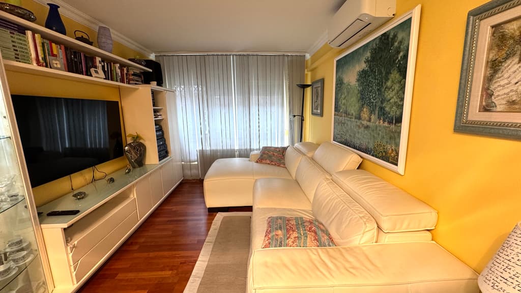 Amb una superfície de 107 m², est magnifico pis ens ofereix una distribució excepcional. Consta d'una cuina office, un saló menjador , 3 dormitoris, i 2 banys complets .