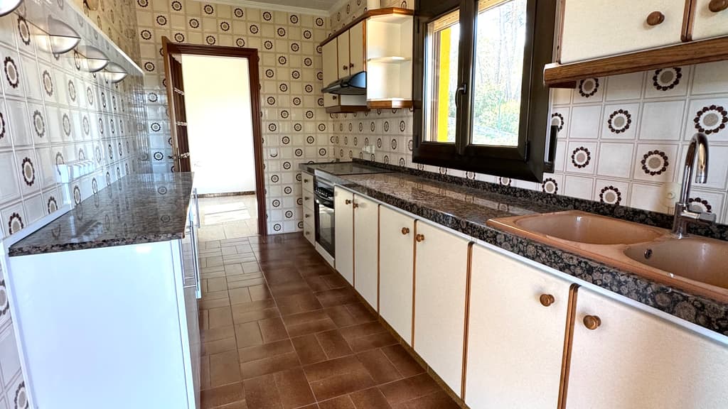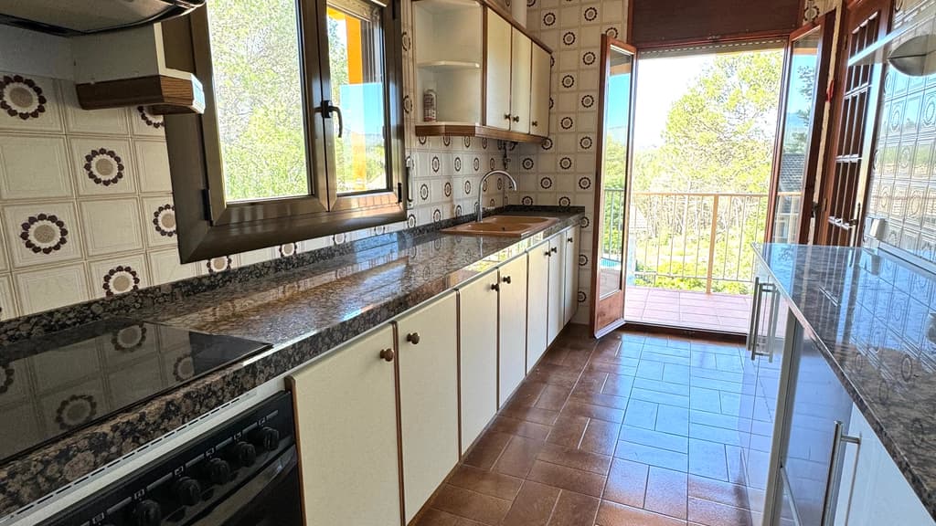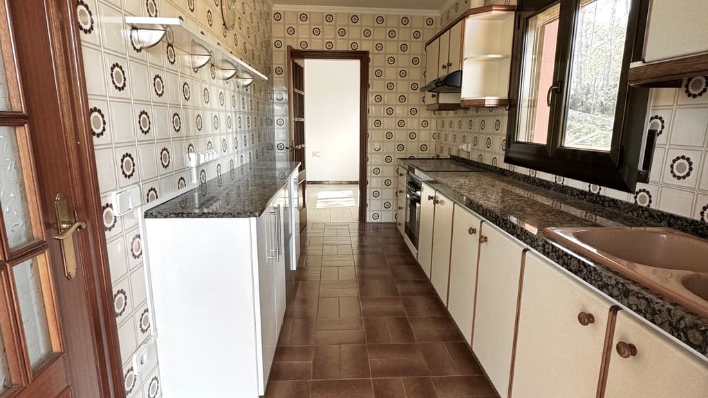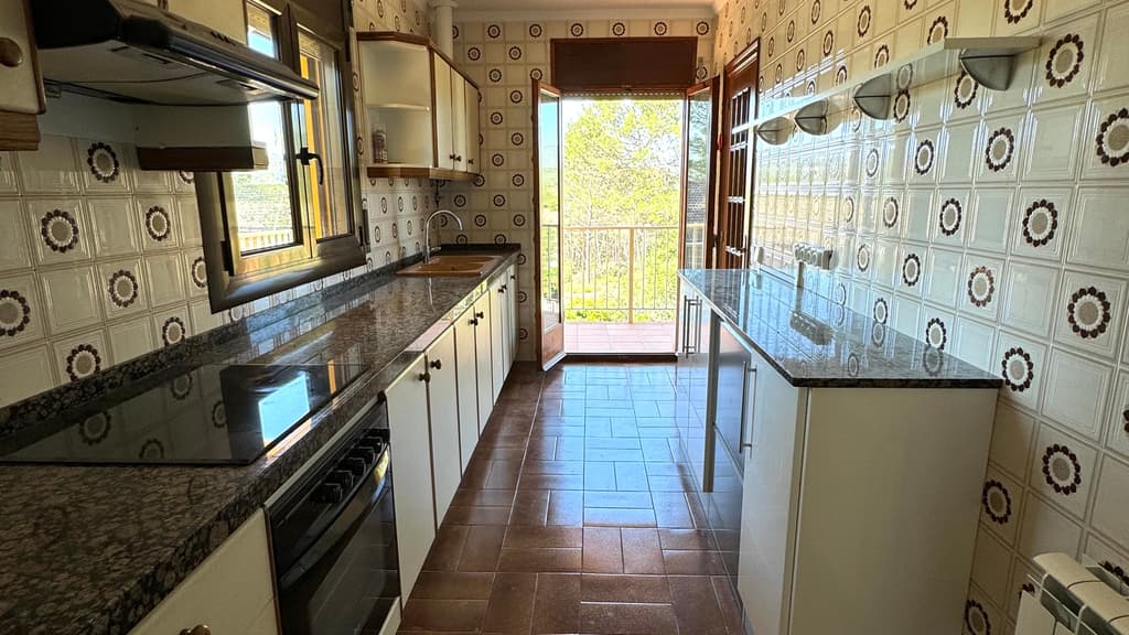A l'interior de la casa, un espai molt lluminós ens acull. El saló menjador, ampli, lluminós, amb vista a montserrat i amb accés directe a un balcó que envolta gairebé tota la casa. Just al costat trobem una cuina molt pràctica, amb bon espai de treball, amb la mateixa orientació que el menjador i amb sortida a l'ampli balcó cantoner.