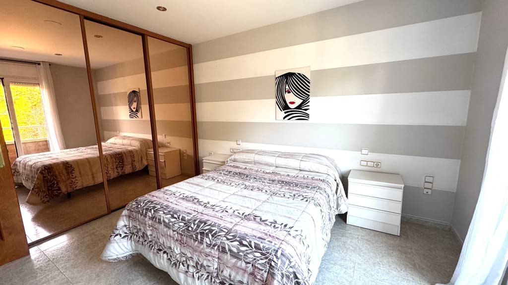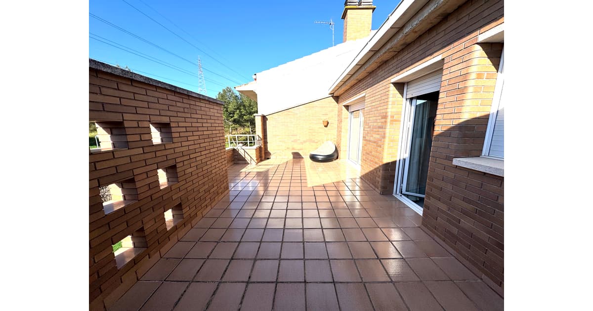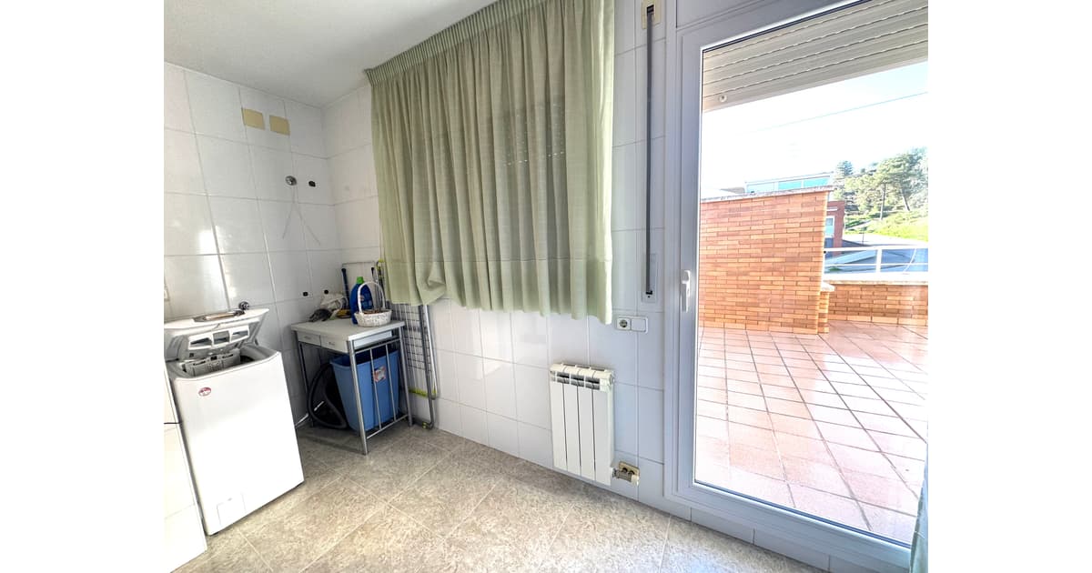 Segona Planta: Accedim per una escala àmplia i ens rep una gran sala , d'ús polivalent, amb orientació sud i sol tot el dia i amb sortida a una terrassa solàrium , que ens ofereix molta intimitat. Just al costat , trobem una sala adaptada a zona de lavanderia i amb sortida a la mateixa terrassa. La zona de nit es distribueix en 2 dormitoris , els 2 dobles , totalment exteriors , amb armaris de paret i amb sortida a balcó i amb molta lluminositat. En el distribuïdor trobem un bany complet amb banyera. En aquesta planta, tenim xemeneia per a poder instal·lar foc a terra.