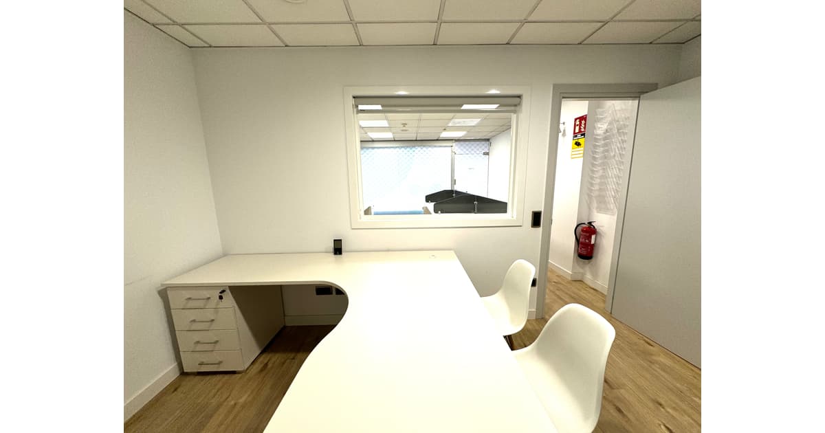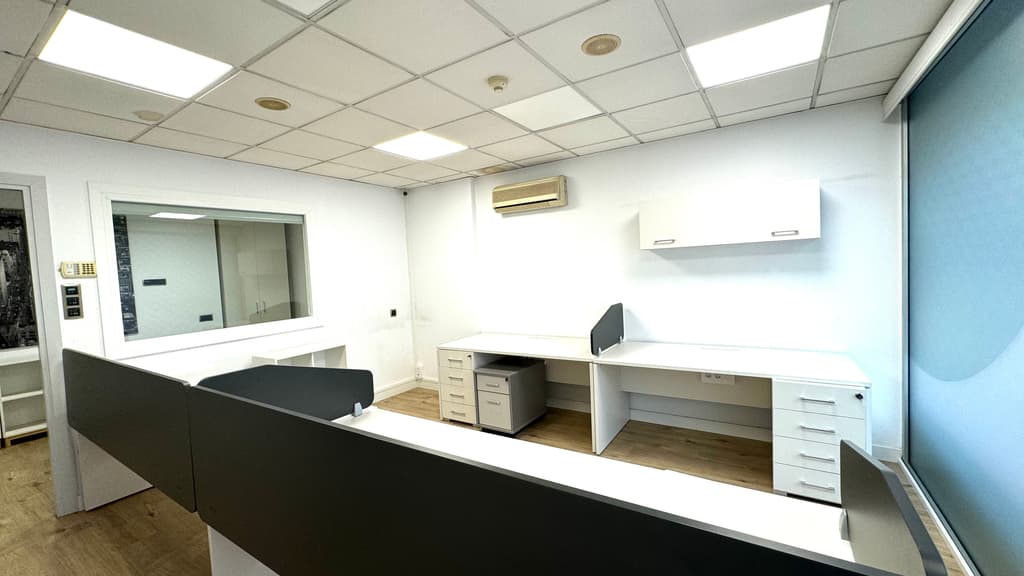 ESPAI IMMOBLES presenta dos locals comercials, contigus, amb zona de despatxos i zona de vehicles i magatzem.