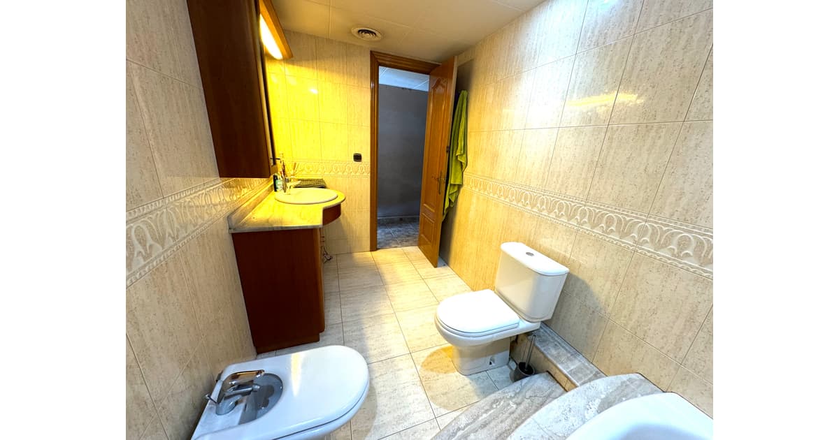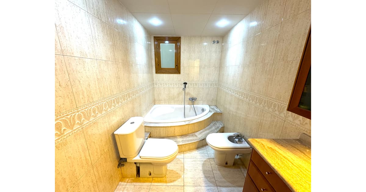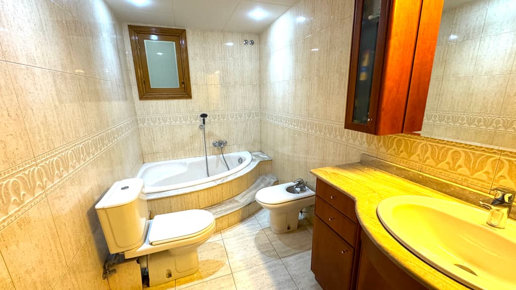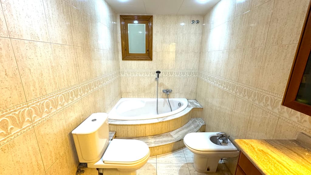 El bany, és ampli i disposa de 4 peces , una generosa banyera raconera i revestit de gres.