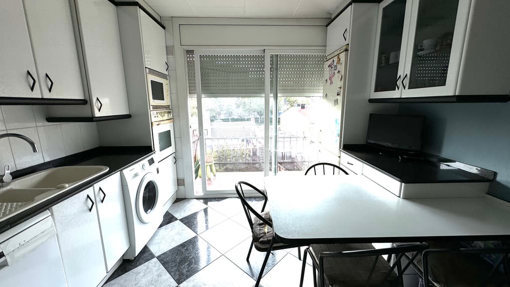 Just al costat tenim una cuina molt àmplia, lluminosa, assolellada i amb espai per a menjar en ella. També té sortida al balcó , amb espai per a una petita taula i cadires i gaudir de les nits d'estiu.