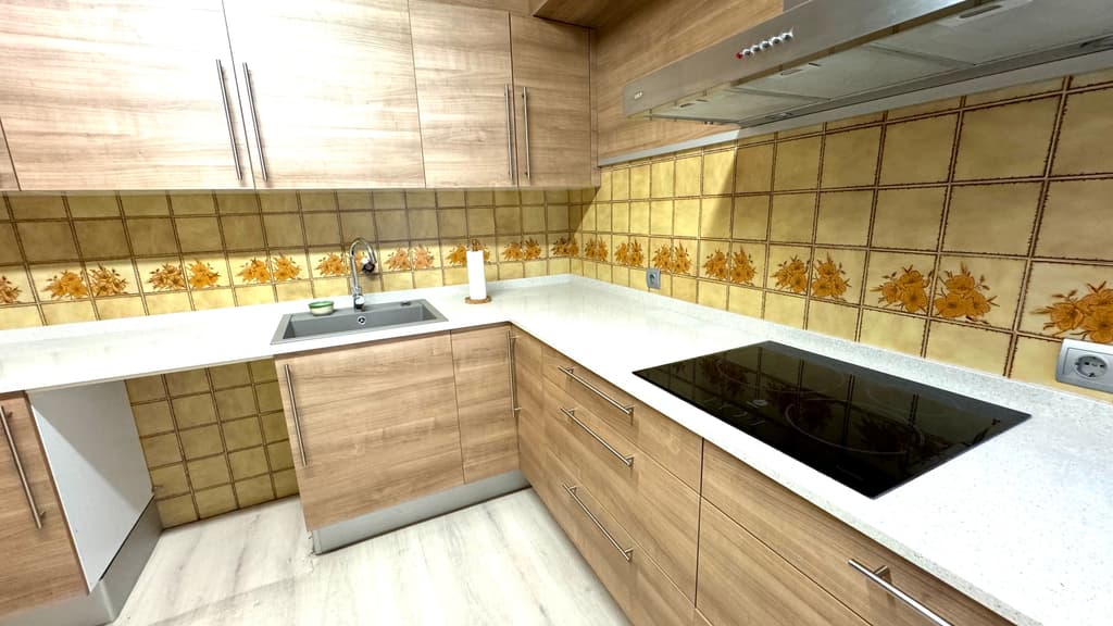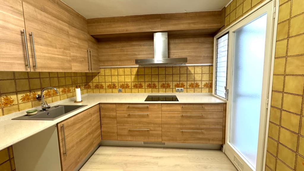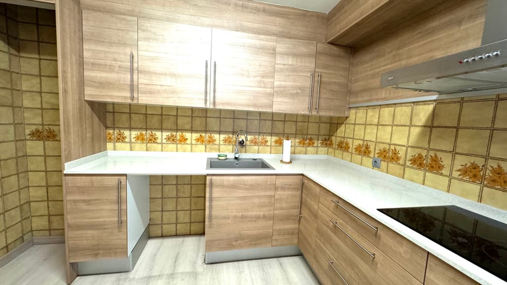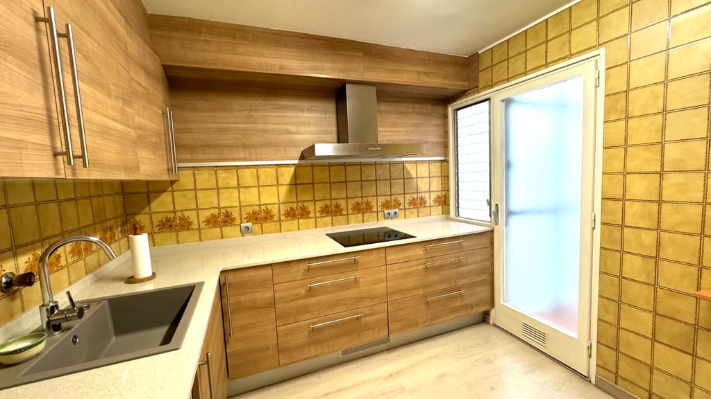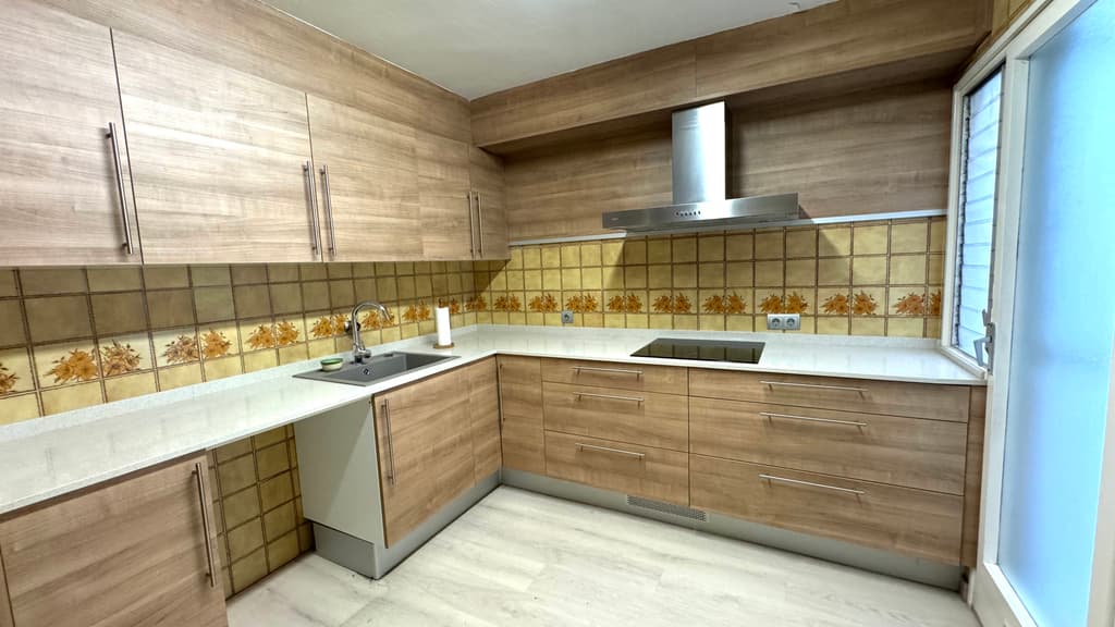 Accedim a la segona planta de l'immoble per un rebedor que ens comunica amb una cuina reformada, amb un estil modern, amb bon espai de treball i amb dimensions per a capacitat per a menjar en ella. Té sortida a una galeria,amb bon espai per a magatzematge, zona de lavanderia, i amb finestra a un pati interior.