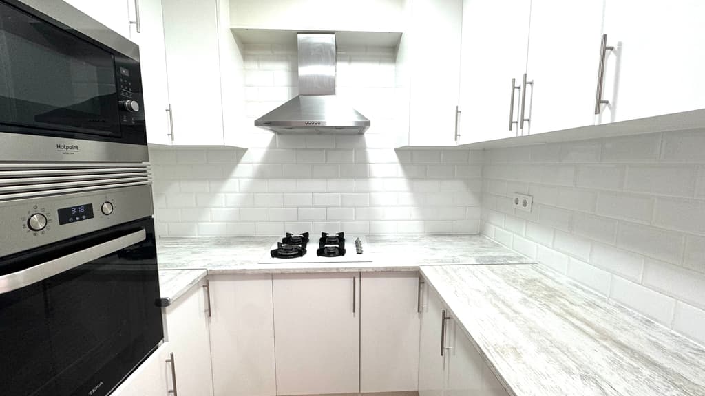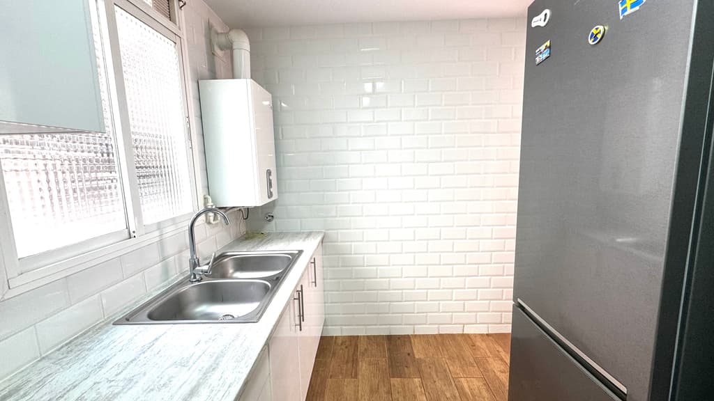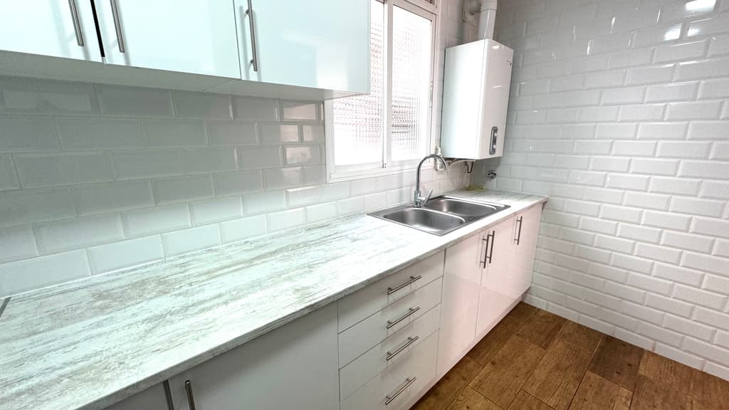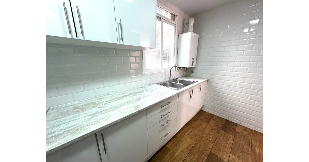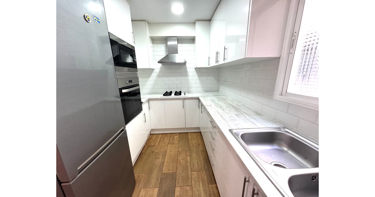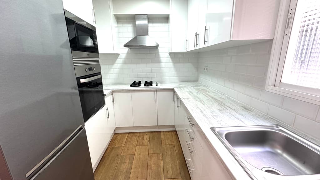 Cuina independent reformada, d'estil modern i actual , equipada i amb gran capacitat de magatzematge.