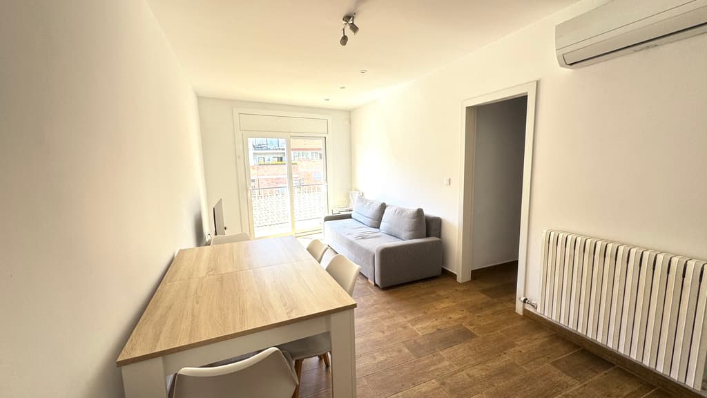 Accedim al pis i trobem un rebedor que ens dona accés directe al menjador , un espai ampli i molt lluminós i amb sortida directa a un balcon de la façana principal , on podem gaudir de vistes a Montserrat .