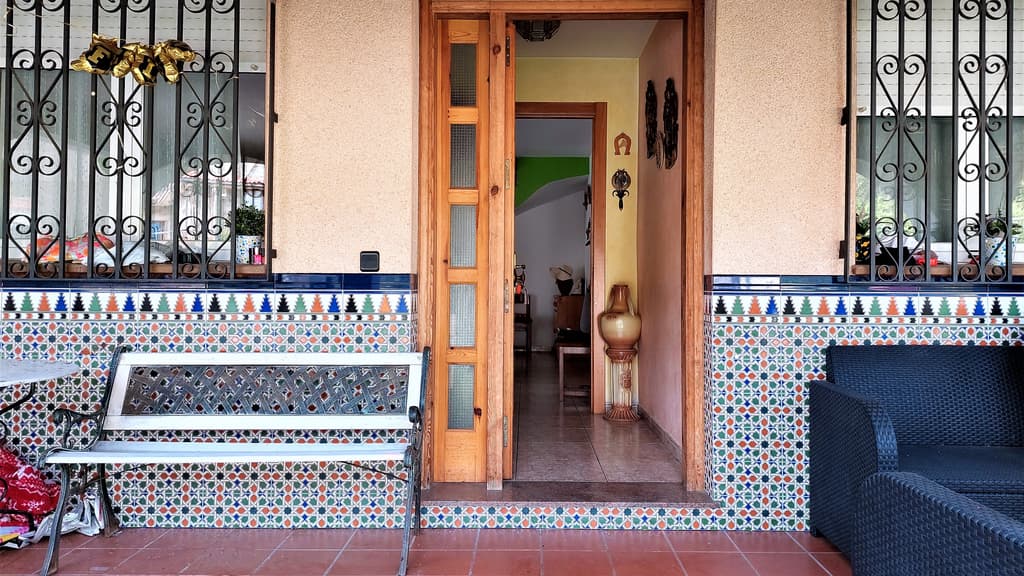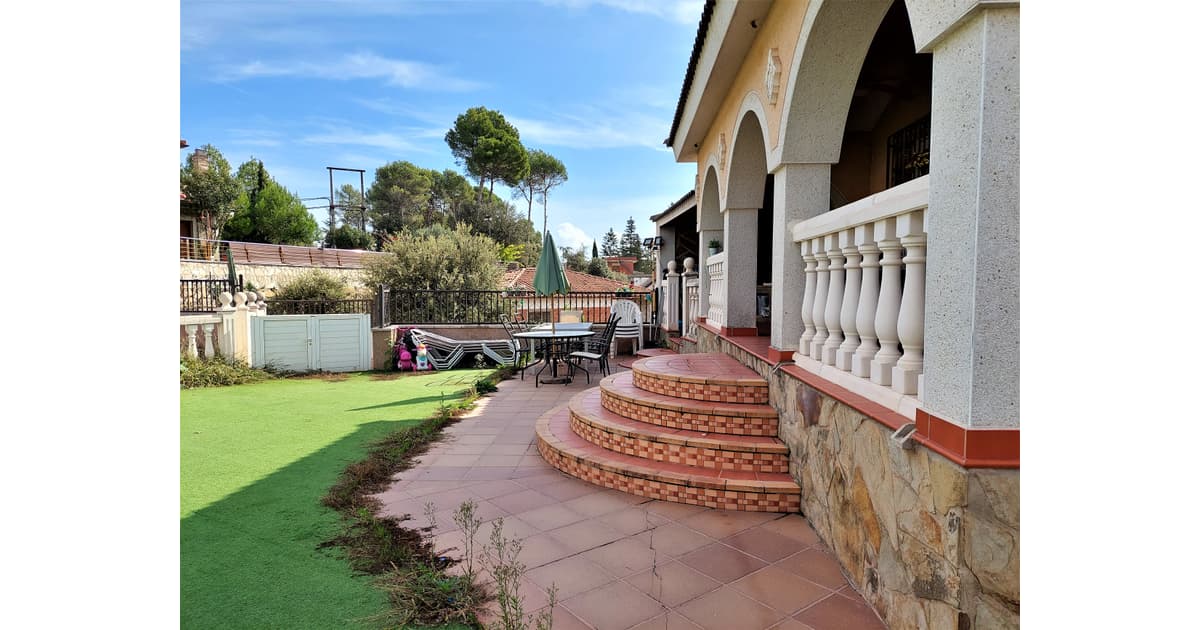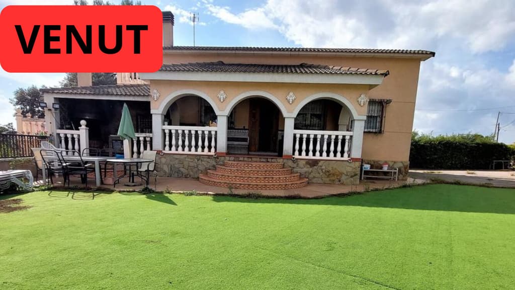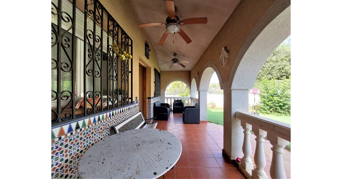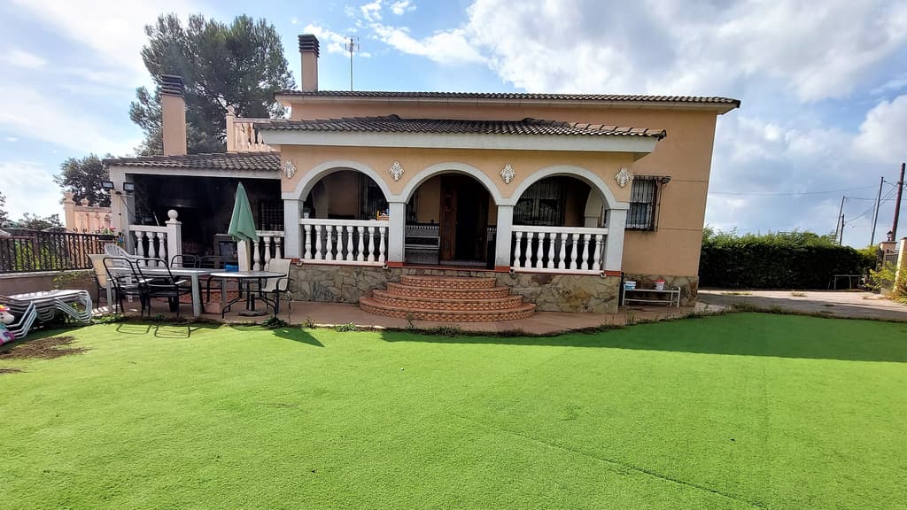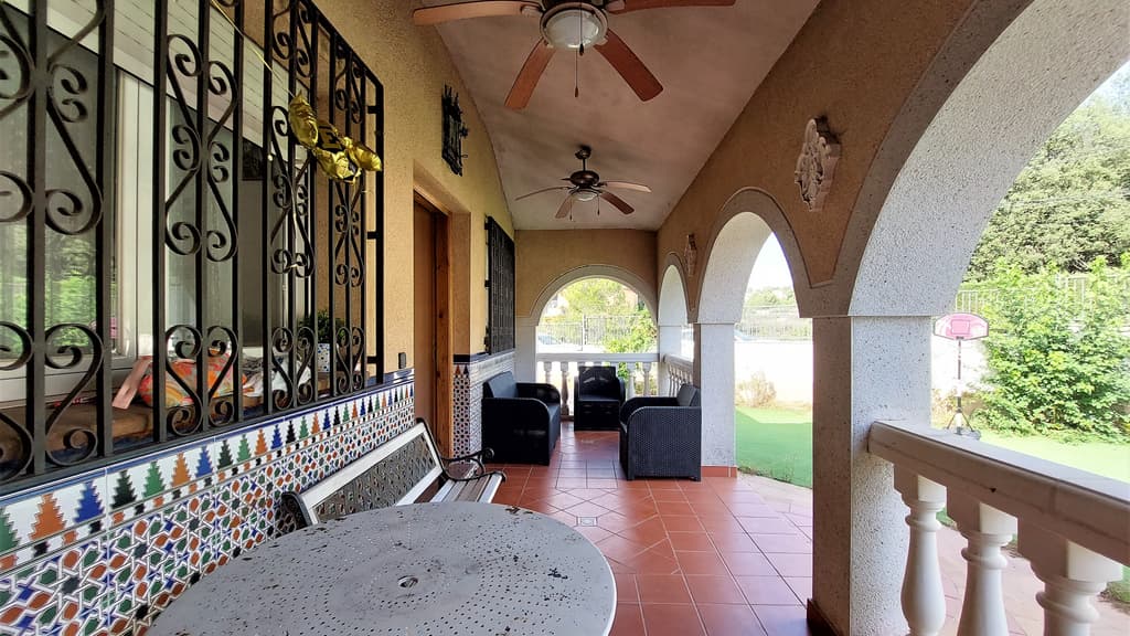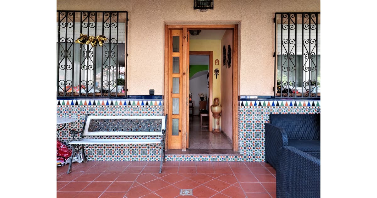 Chalet construido sobre un solar de 766 m2, dispone de un porche techado y pavimentado, zona de barbacoa para disfrutar de comidas familiares .