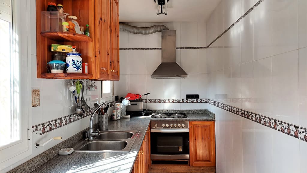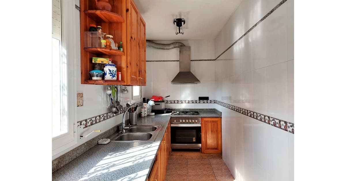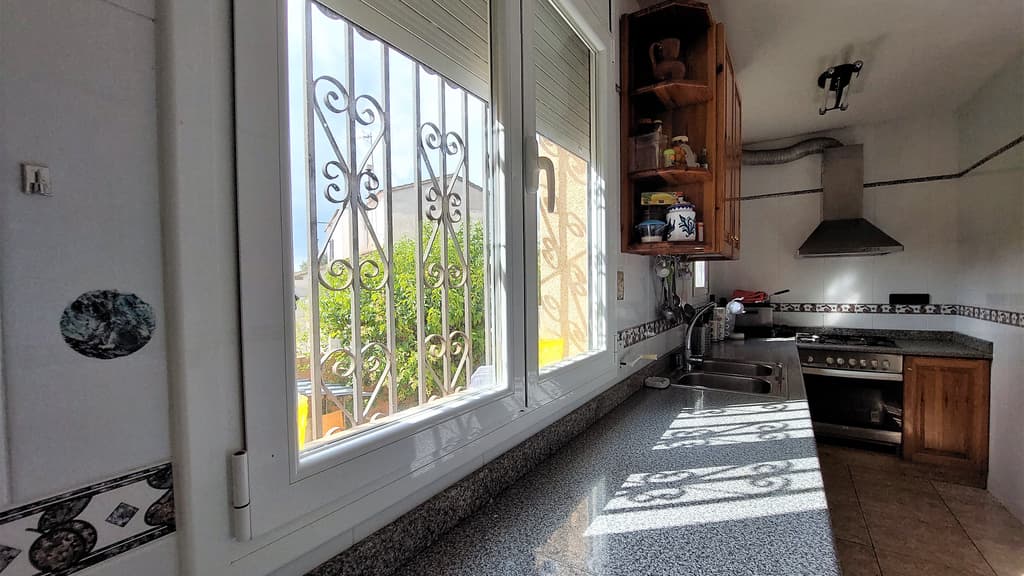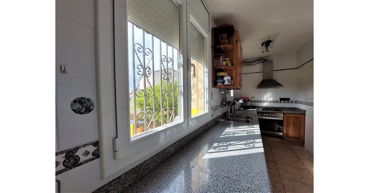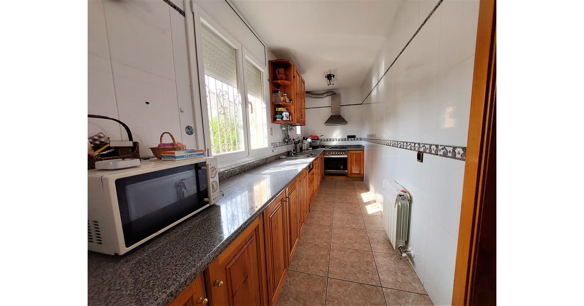 Justo al lado, tenemos una cocina amplia, rústica, office , con amplia ventana exterior y con zona de despensa , con capacidad de gran almacenamiento , ventana exterior y posibilidad de zona de comedor en la misma cocina.