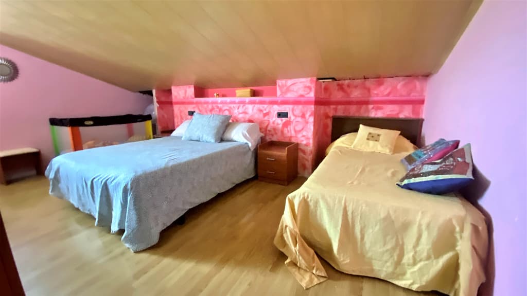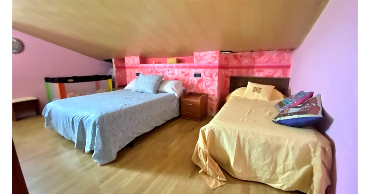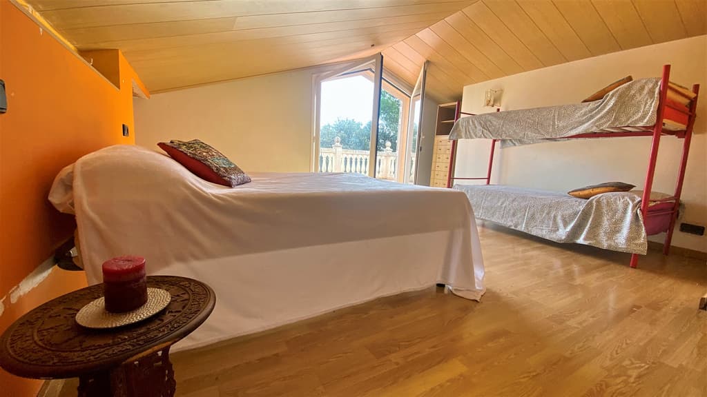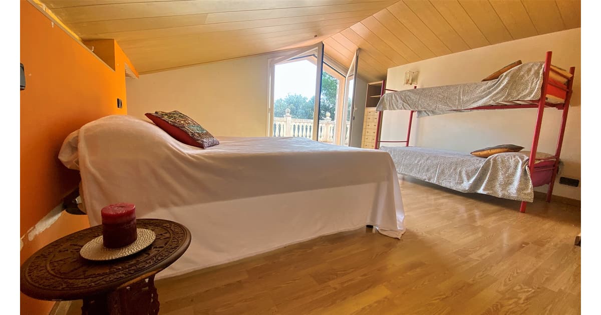 Subimos a la segunda planta y encontramos dos habitaciones dobles muy generosas y luminosas, y una habitacion triple, una estancia muy grande y con acceso a la terraza de esta segunda planta.