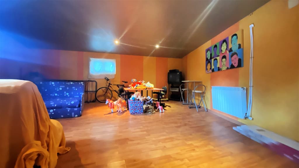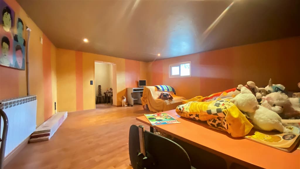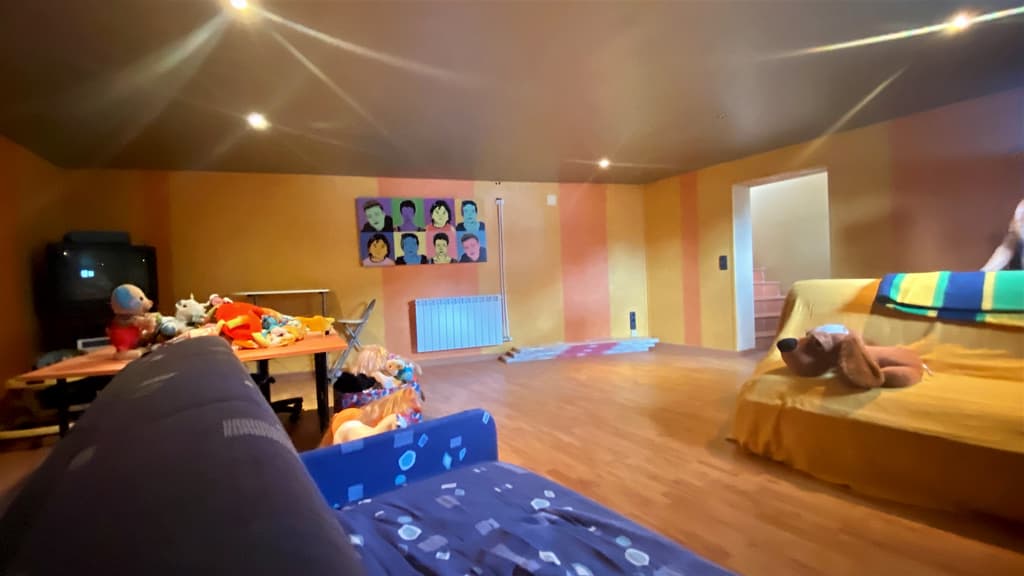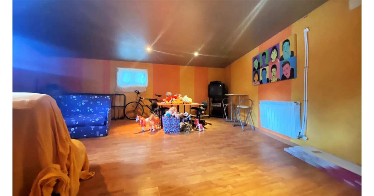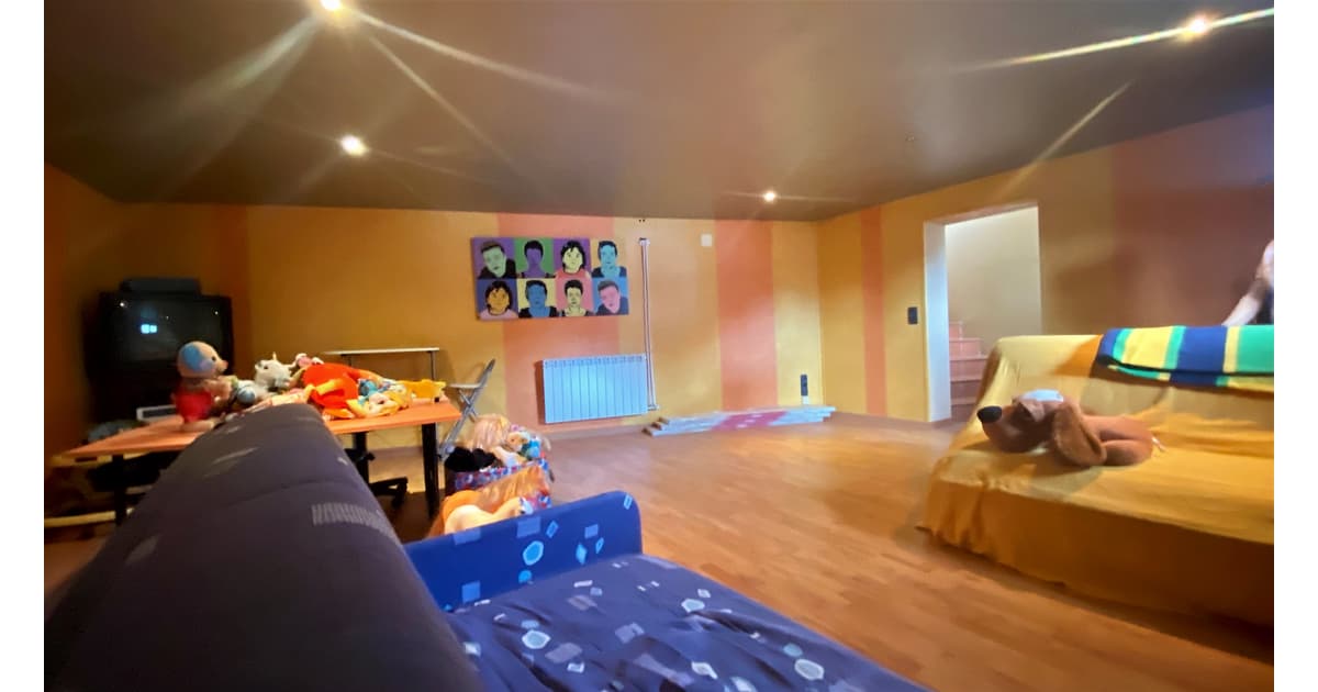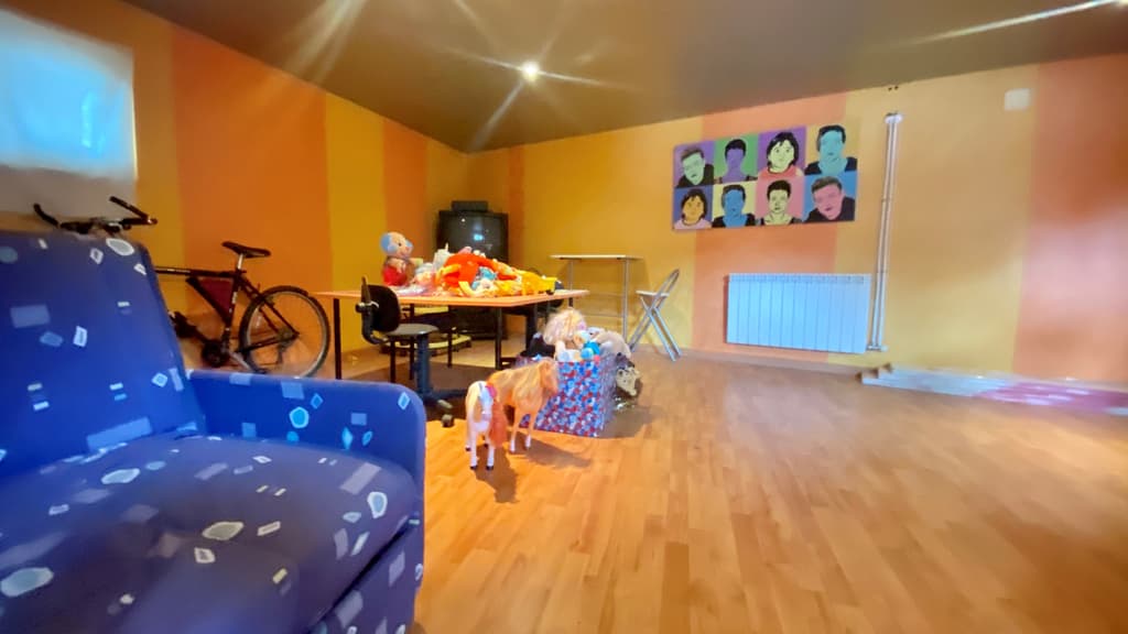 Desde esta estancia, podemos acceder a la planta baja de la casa, donde encontramos una gran sala totalmente habilitada y con posibilidad de hacer gimnasio, zona de juegos infantil, cine….