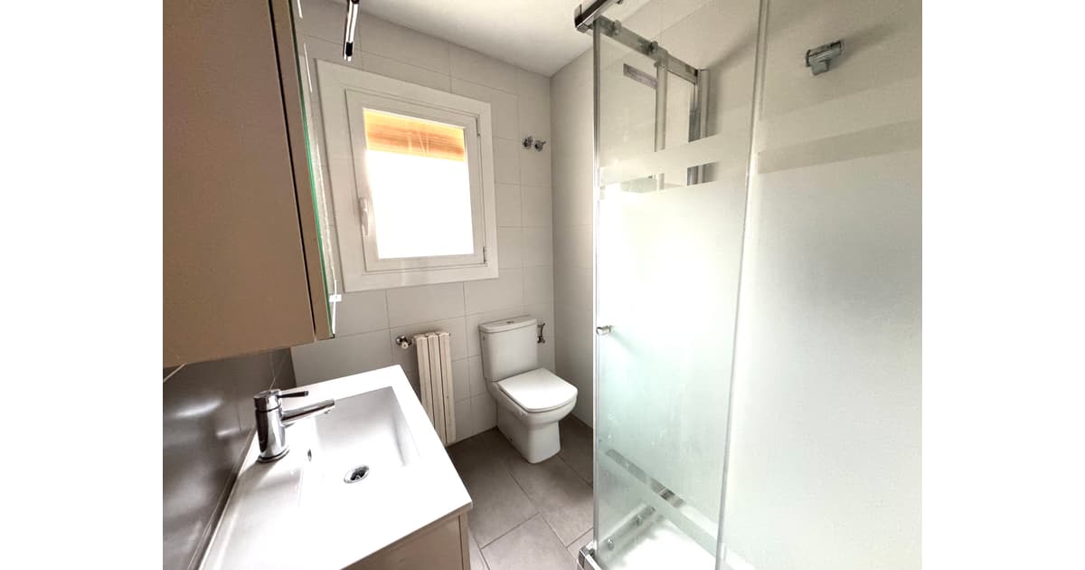 Consta de un baño totalmente reformado , con plato de ducha y mampara.
