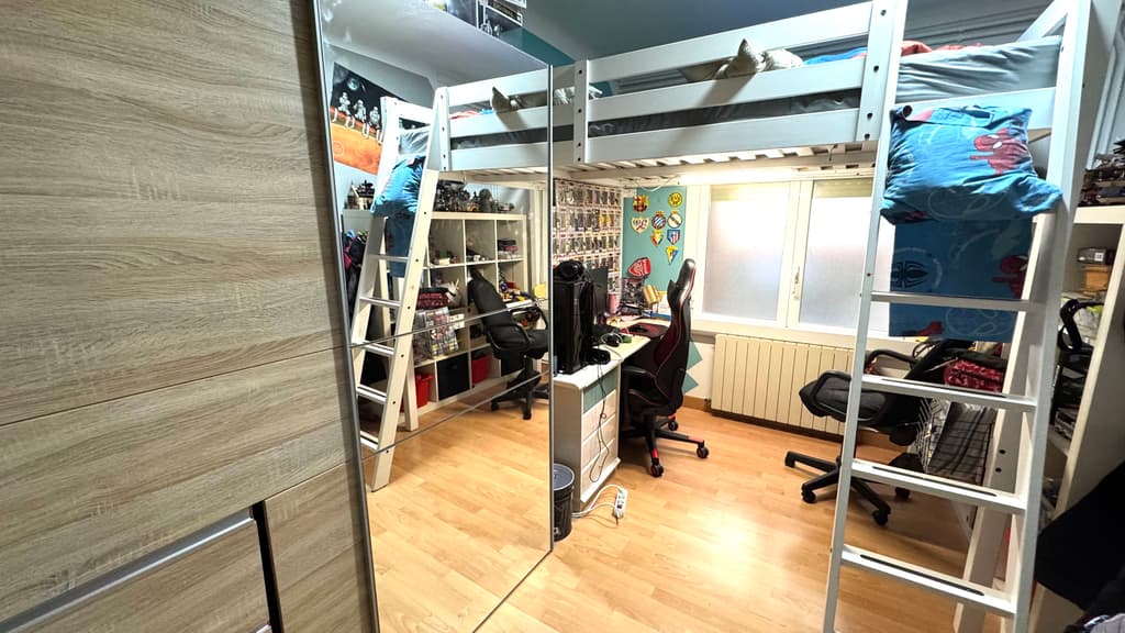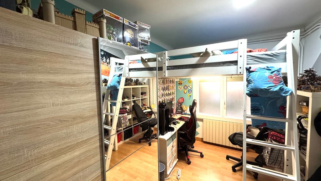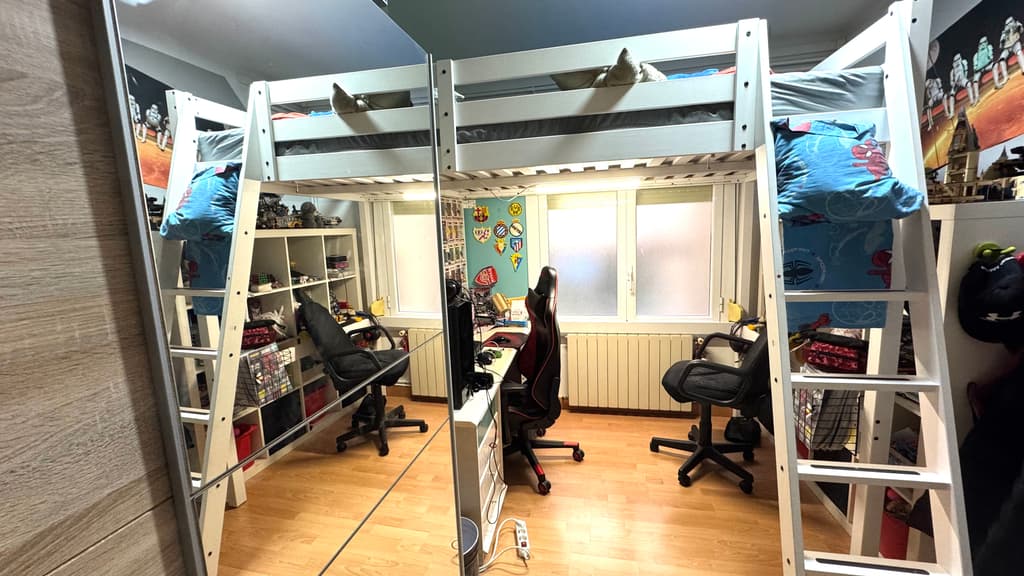 La zona de noche, se compone de 3 habitaciones dobles y una habitación individual. Dos de ellas, comparten salida a un balcon con vistas a la montaña.