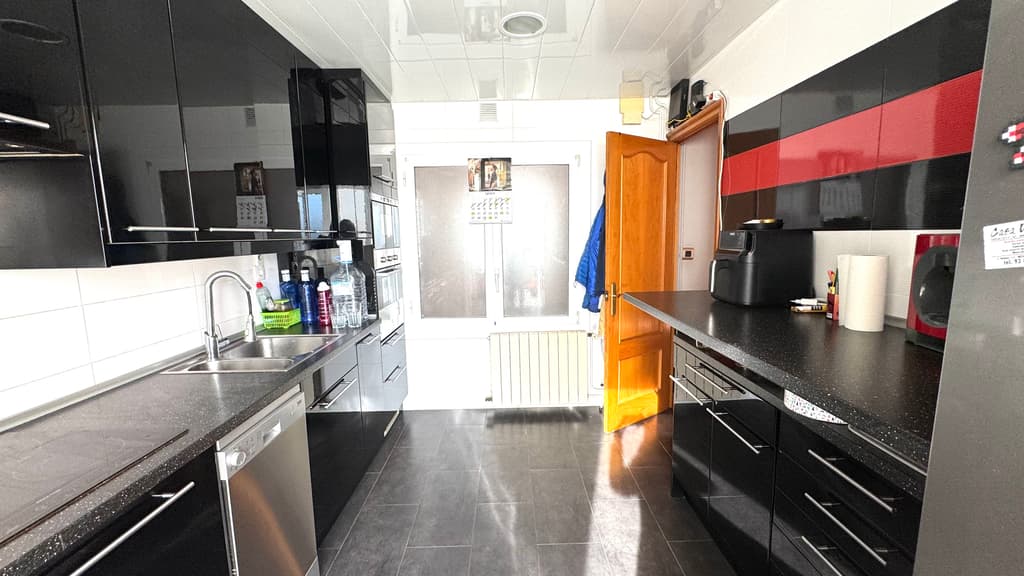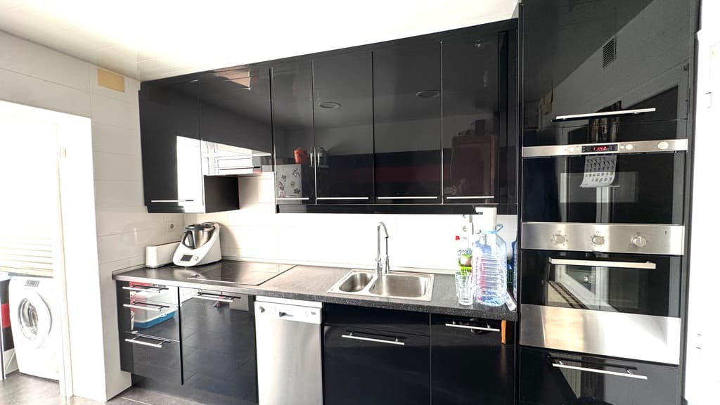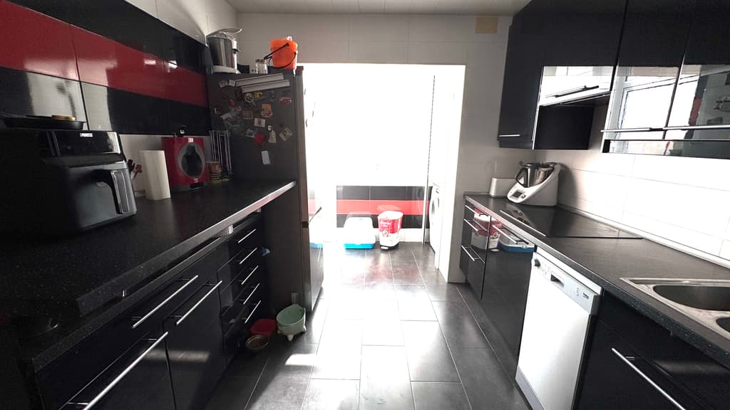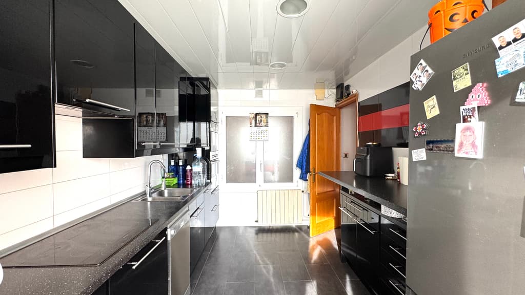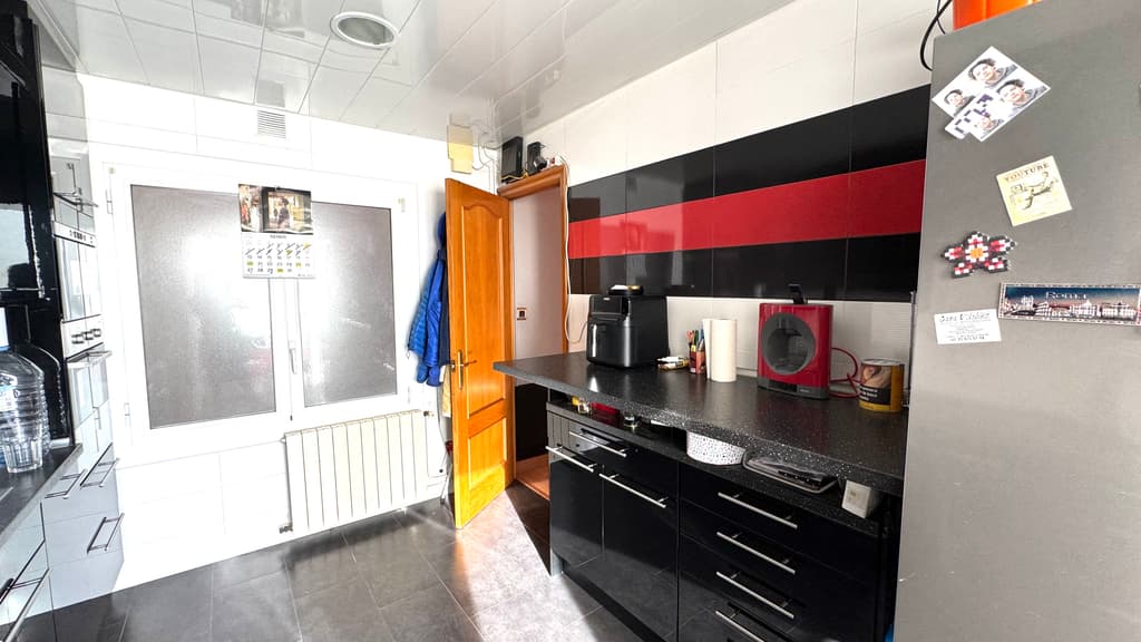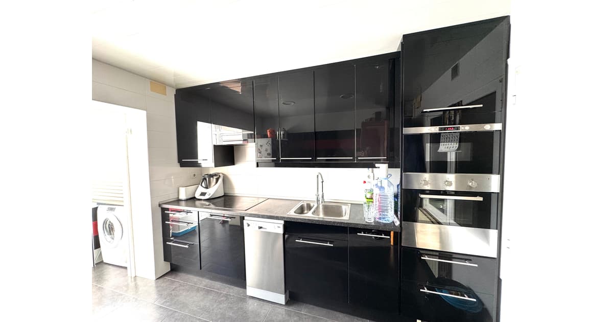 Justo al lado, nos encontramos una cocina office, reformada, con estilo moderno y actual y con unas dimensiones generosas, muy buena zona de trabajo , con espacio habilitado para lavanderia y con salida al balcón , con zona de tendedero.