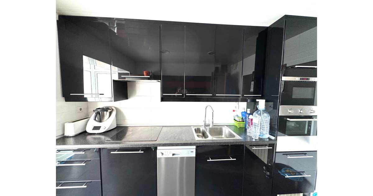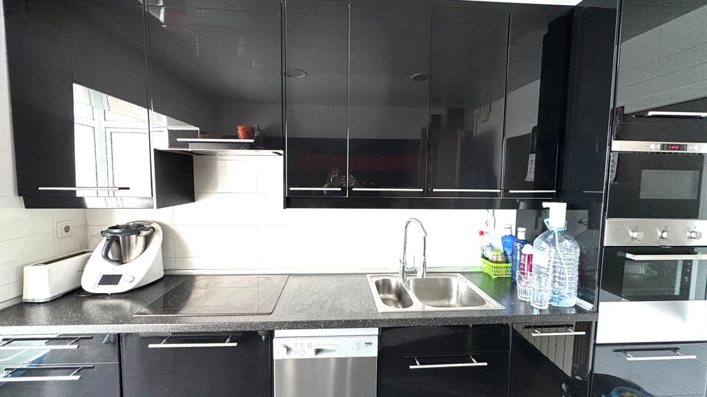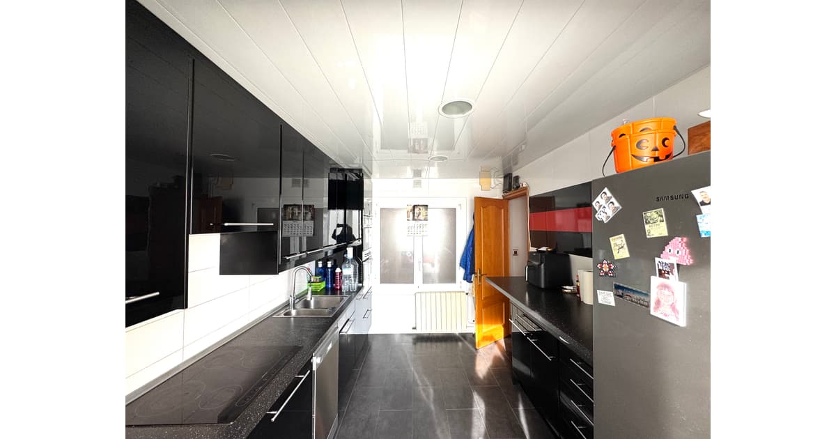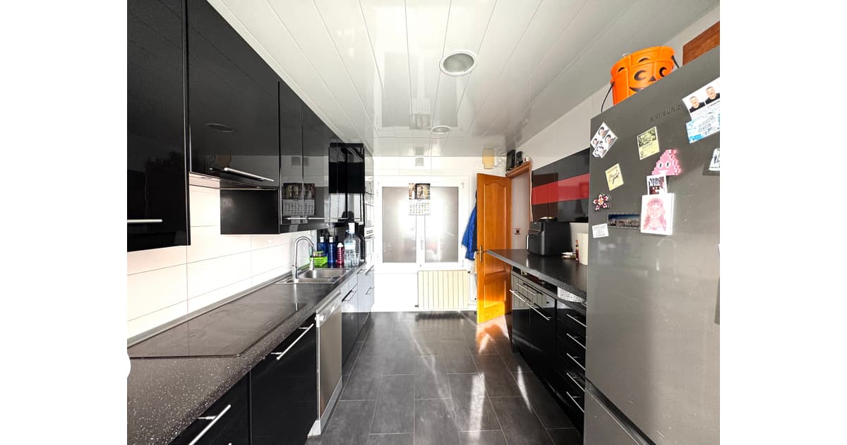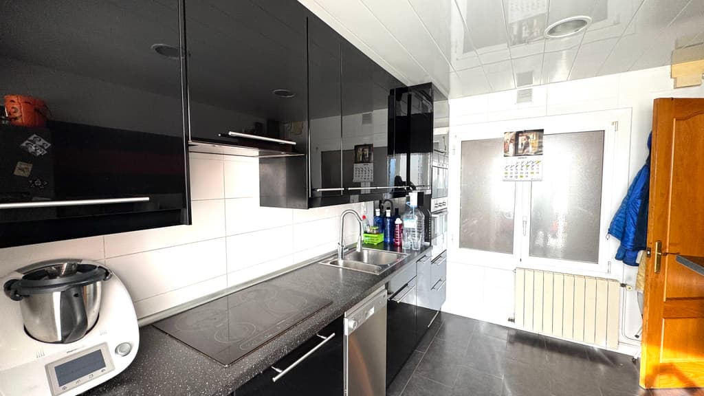 Justo al lado, nos encontramos una cocina office, reformada, con estilo moderno y actual y con unas dimensiones generosas, muy buena zona de trabajo , con espacio habilitado para lavanderia y con salida al balcón , con zona de tendedero.