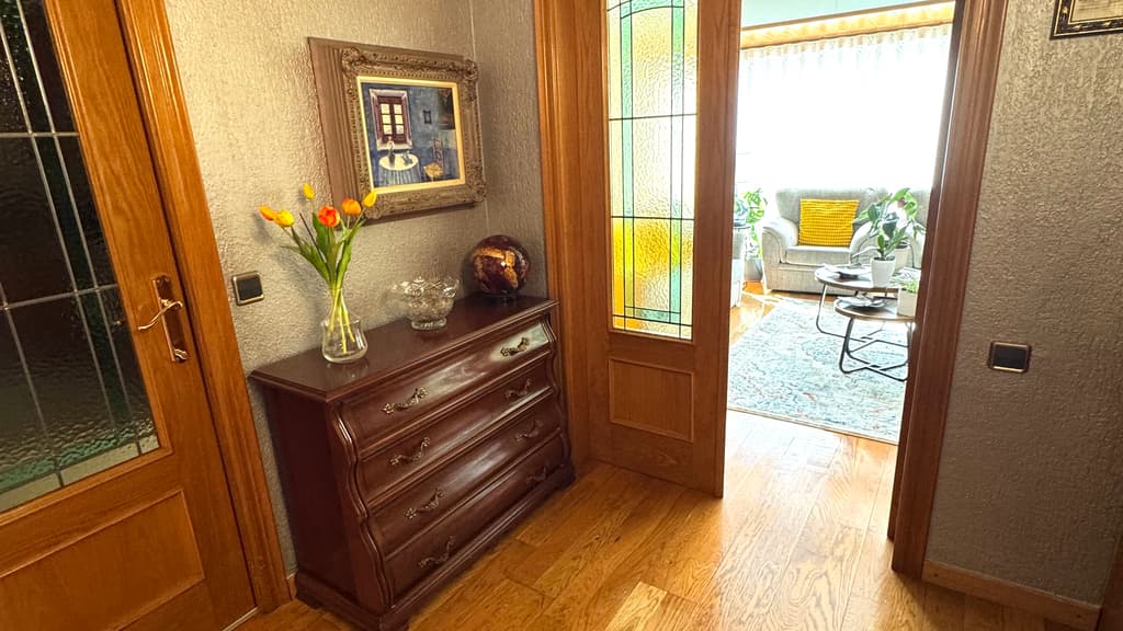Entramos al inmueble y encontramos un amplio recibidor que distribuye la zona de dia y de noche.